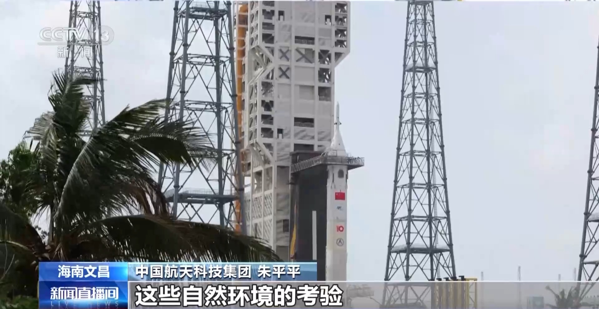 中国航天科技集团 朱平平:没有传统的大环抱平台这样一个保护了,火箭需要在露天经历风雨,所以我们在设计之初,也是经过了相应的试验的验证,防雨的设计、防风的设计等等,去让火箭能够承受这些自然环境的考验。