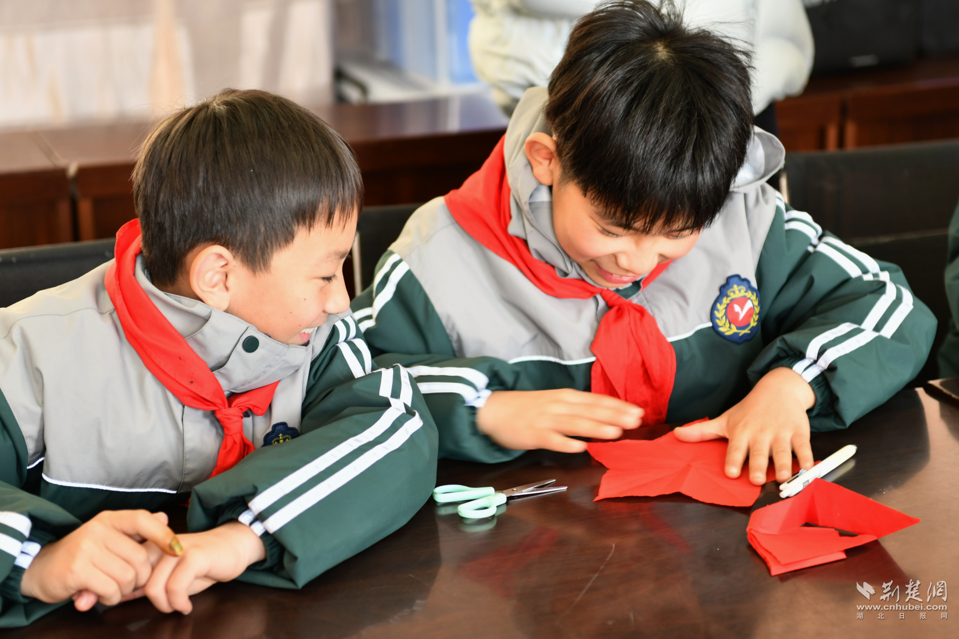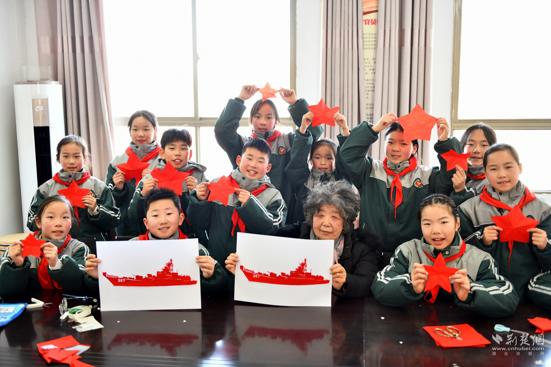 1月22日,襄阳市退役军人事务局、襄城区退役军人事务局、区融媒体中心联合襄阳市昭明小学,共同举办了一场温馨感人的“情系边海防·共筑强军梦”主题活动。在学校精心布置的会议室里,“情系边海防·共筑强军梦”的主题背景格外醒目。同学们在老师的指导下,专心致志地制作着送给官兵叔叔的特殊礼物——有的精心绘制图文并茂的手抄报,描绘心中的钢铁巨舰;有的巧手剪出红色的五角星和威武的舰艇剪纸;有的认真书写遒劲的毛笔字,字里行间满是对军人的崇敬;还有的在贺卡上写下稚嫩却真诚的祝福话语。每一件作品,都凝聚着孩子们对戍边卫国防英雄的深深敬意。