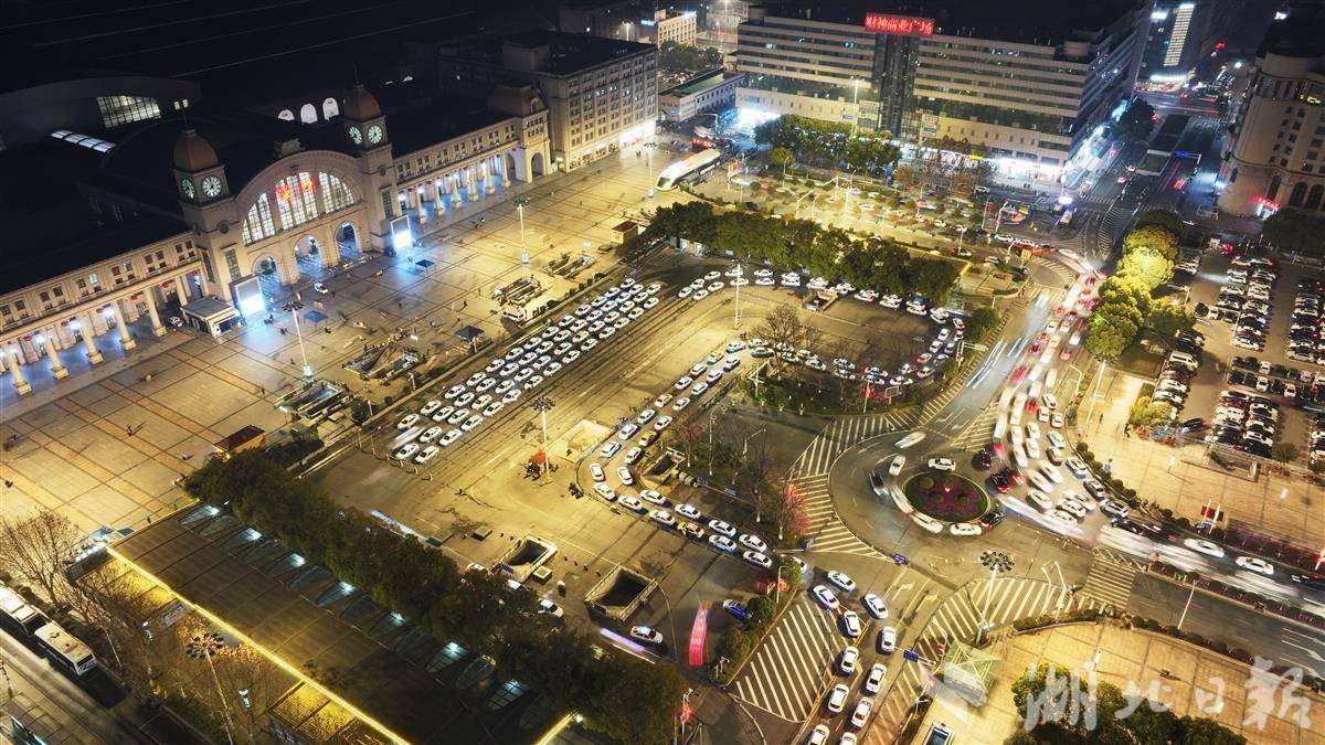 夜幕中,汉口火车站灯火通明。春运期间,站前广场人流涌动,密集的车辆在灯光映照下,如一条条银色的链条,在道路上有序流转、蜿蜒前行。全国高铁路网持续扩容,湖北“市市通高铁”,铁路部门加密车次,有效分散旅客出行;铁路与交管部门协同发力,强化现场疏导与车辆管控。运力提升与精细管理双管齐下,共同编织出这幅灯火通明、繁忙却井然有序的春运画卷,为归途筑牢坚实保障。(湖北日报全媒记者 陈少哲 摄)