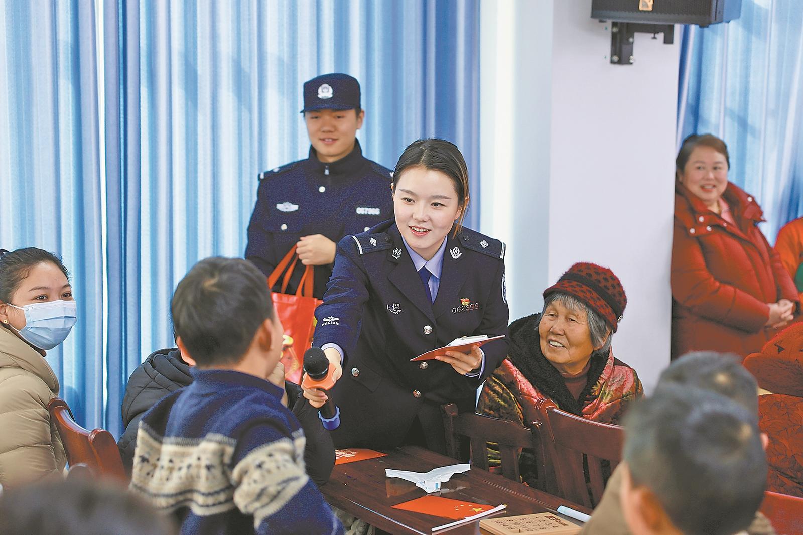 互动问答环节则成为了一堂生动的安全宣传课。民警张一帆围绕反诈、冬季防火、交通安全等话题提问:“发现邻居着火该怎么办?”“陌生电话让转账如何应对?”