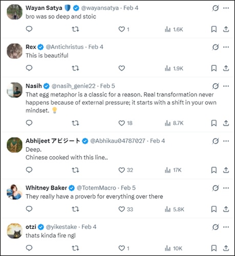 没想到这句话把美国人看激动了,说这个比喻实在太精妙了,这是什么神奇的古典智慧啊:
