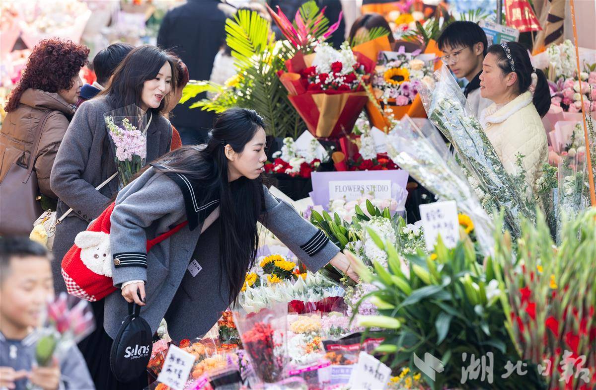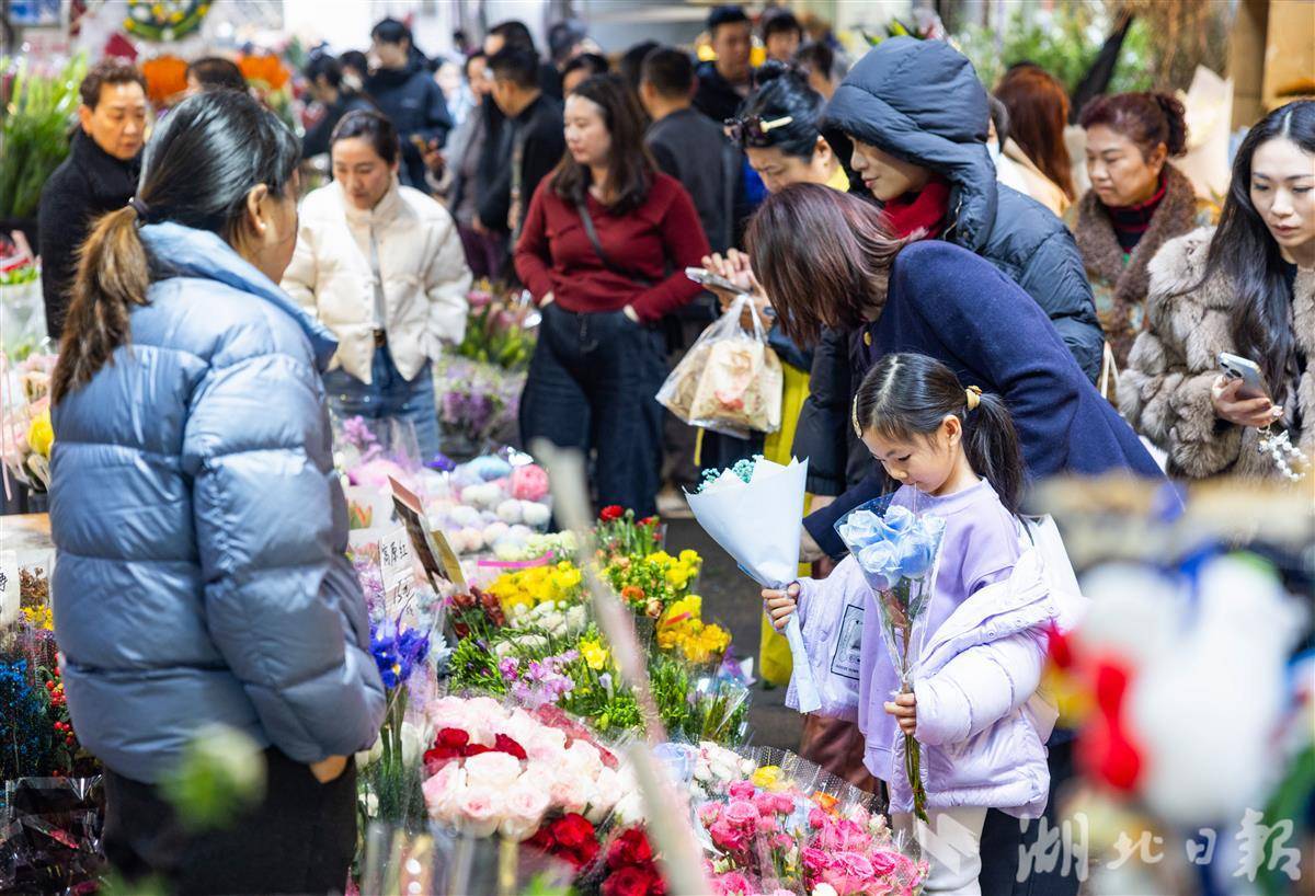 2月13日,武汉循礼门花卉市场,摆满了各式各样的鲜花、盆栽,前来选购的市民络绎不绝,洋溢着喜庆的年味。