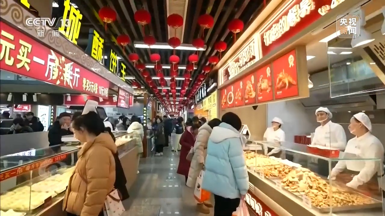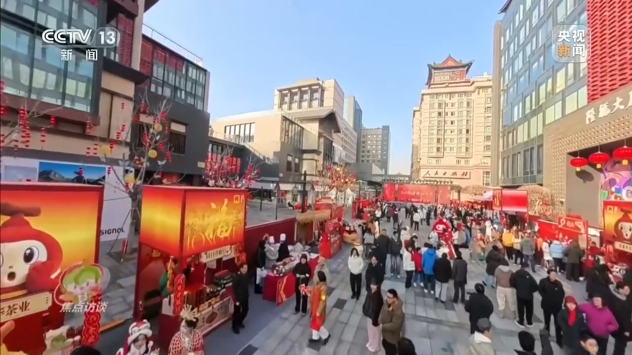 在隆福寺街区,习近平总书记察看各式年货摊位,同现场群众亲切交流,并向北京市民和全国各族人民拜年。