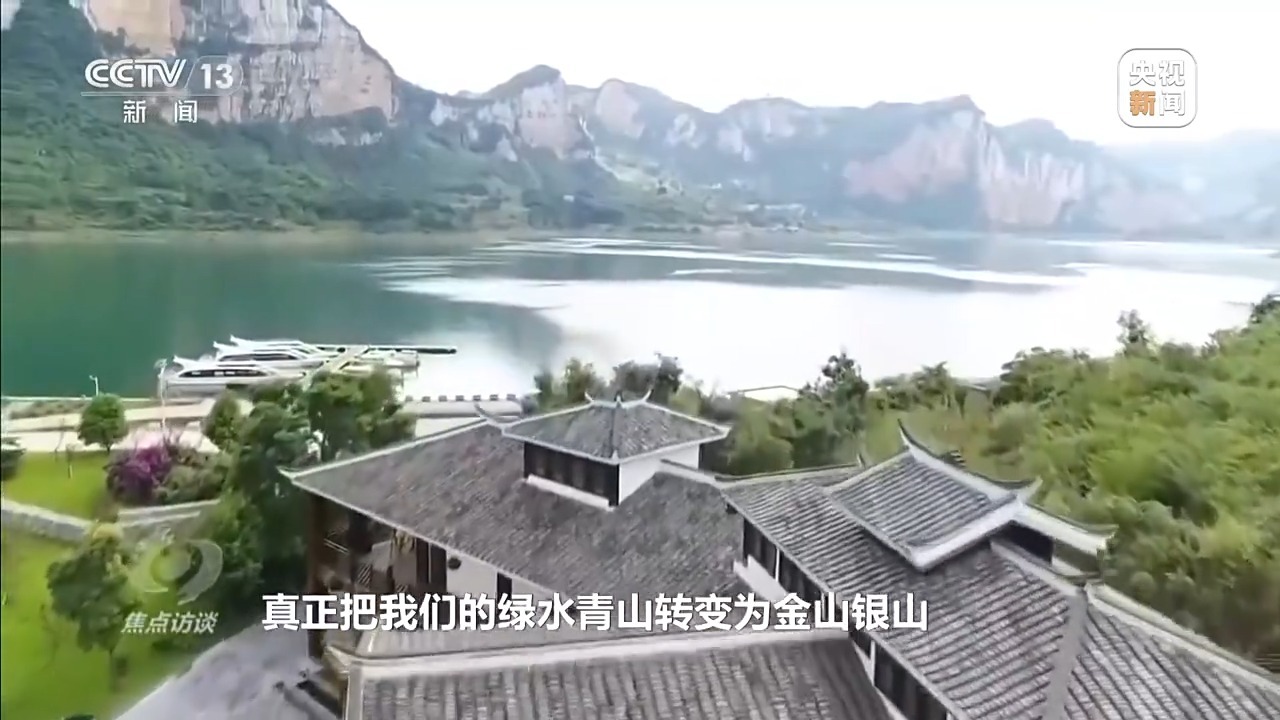 贵州黔西市化屋村党支部书记 肖阳群:我们牢记总书记的嘱托,通过建设污水处理池、自动监测站等一系列措施,使化屋村的生态环境更加优良。引导村民开办农家乐40家、民宿25家,让化屋村从务工经济转变为旅游经济,真正把绿水青山转变为金山银山。