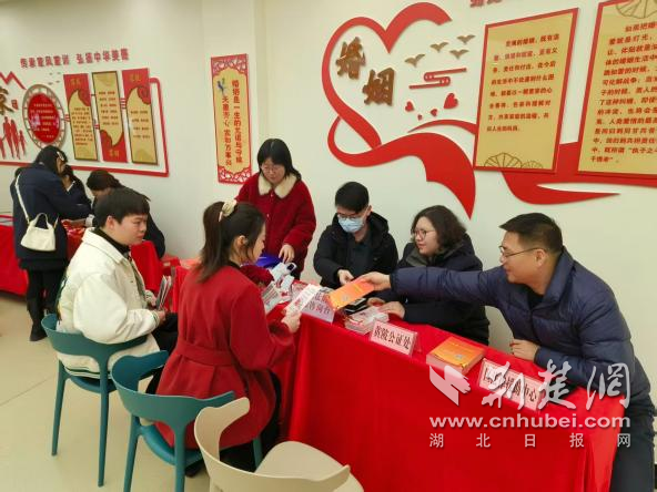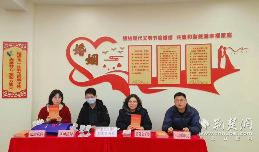 荆楚网(湖北日报网)讯(通讯员 安澜)2月14日,在情人节温馨浪漫与新春佳节喜庆祥和的氛围里,黄陂区司法局、区法律援助中心、区公证处组成“木兰法韵”法治服务队走进婚姻登记处,通过现场咨询、政策解读、发放宣传资料等形式,引导大家树立正确的婚姻观、家庭观,为家庭和睦、社会和谐筑牢法治根基。