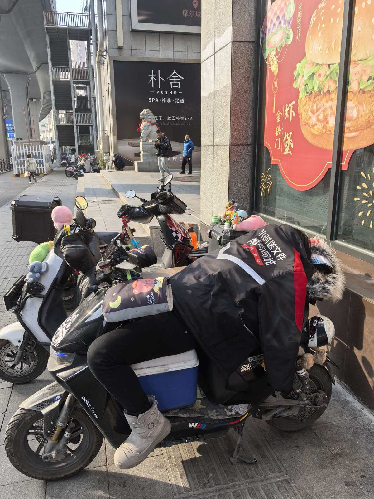 快递小哥在路边睡觉