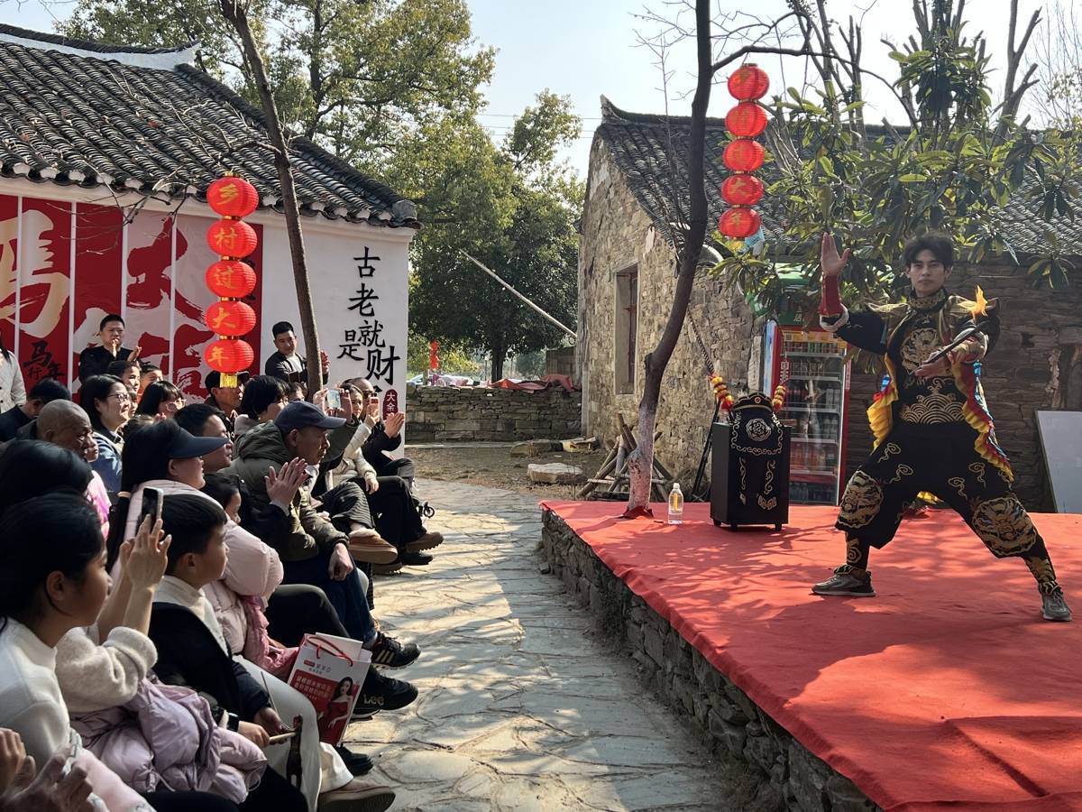 2月14日,位于武汉市黄陂区的大余湾古村,正举办以“古村烟火味·非遗中国年”为主题的庙会。庙会将传统民俗与乡村体验融合,用怀旧游戏、非遗展演、特色美食串联起别样年味,让市民游客在古村中感受春节热闹氛围。