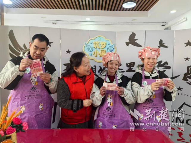 荆楚网(湖北日报网)讯(通讯员 刘珊)“从今天起,我也是拿工资的人了!这是我新年收到最好的礼物!”2月14日,襄阳市樊城区旭东路筑梦小屋的3名智力残疾人店员收到了第一笔工资200元,脸上绽开幸福的笑。
