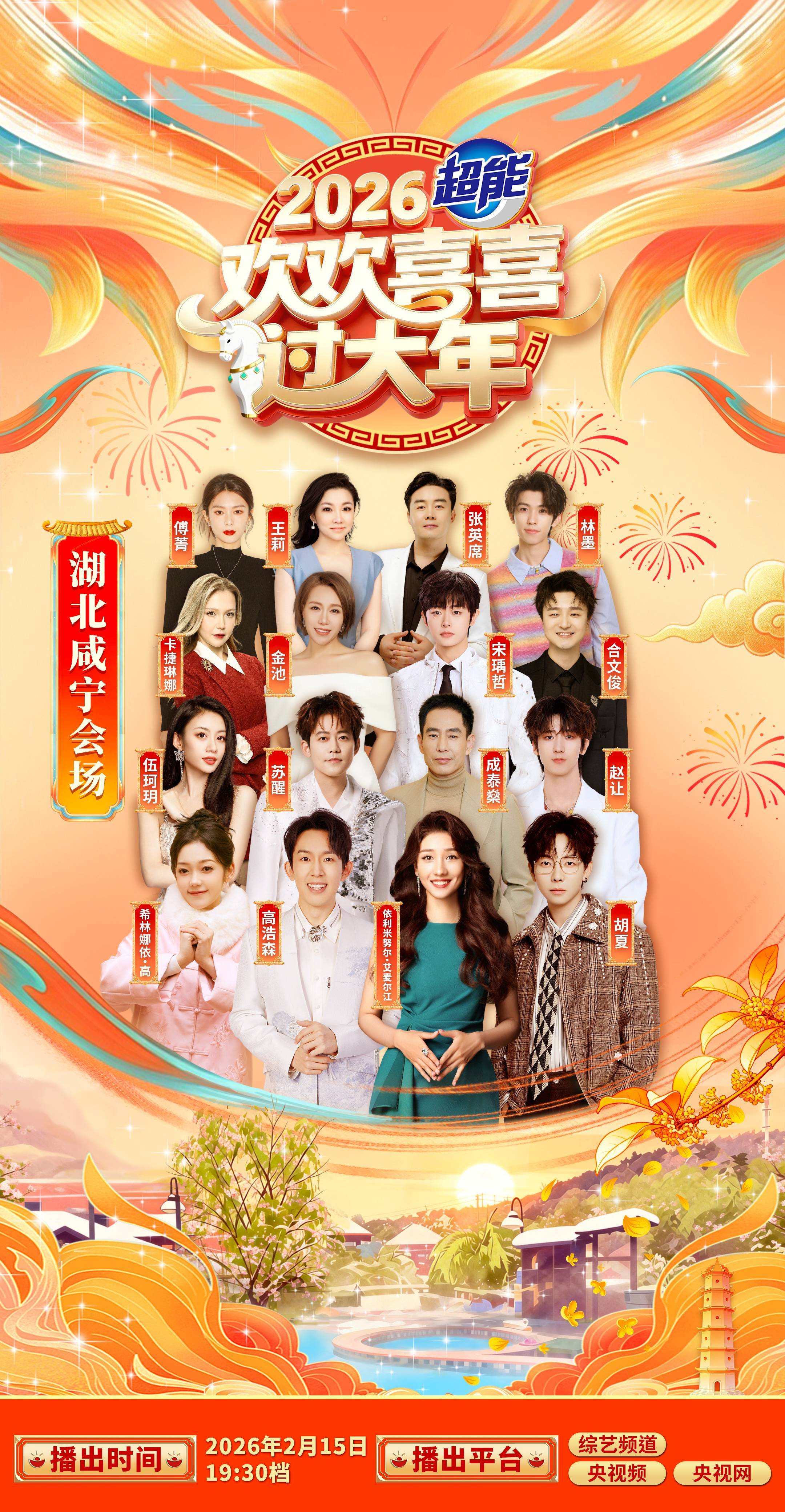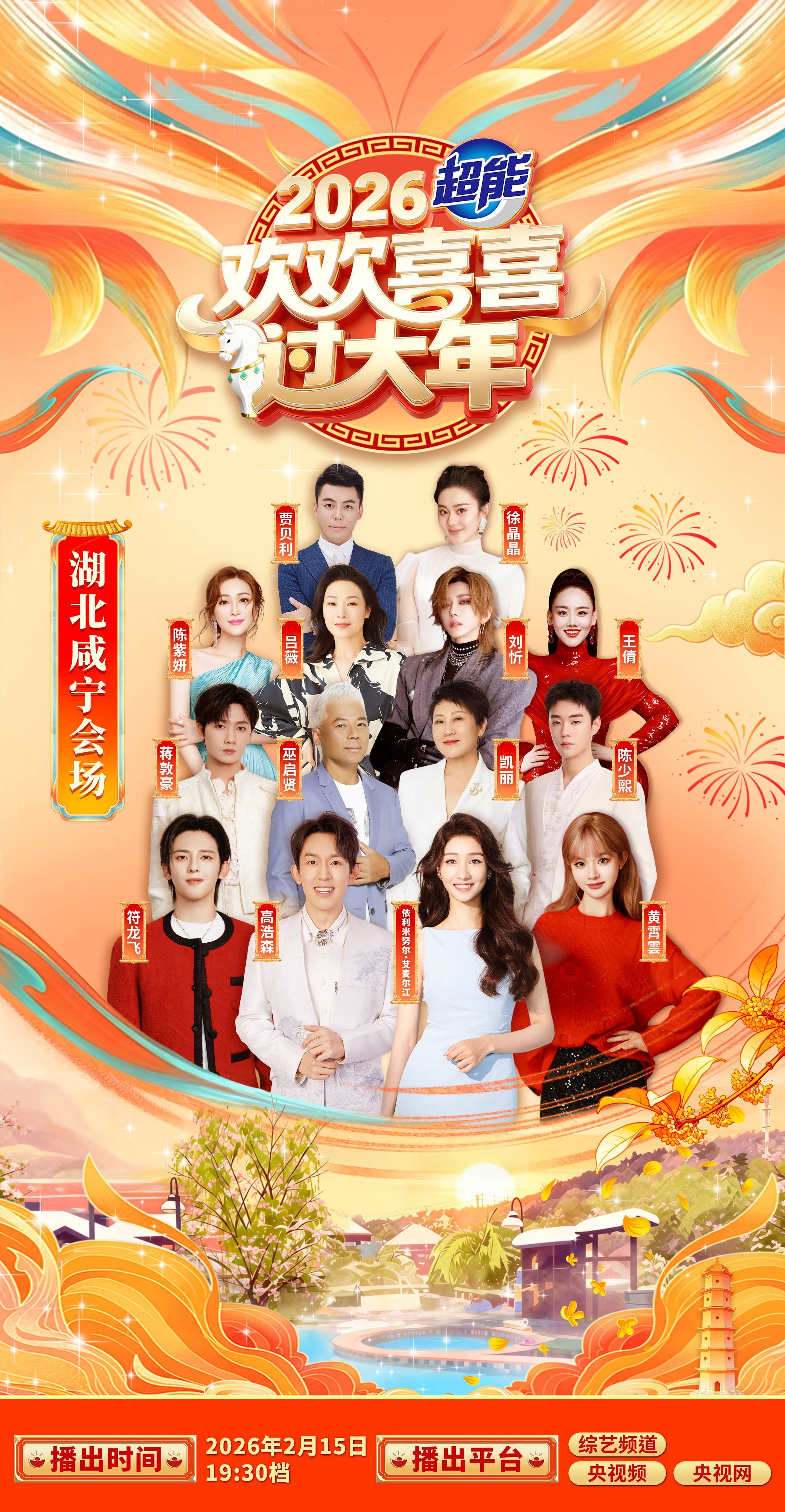 湖北日报讯(记者夏中华、通讯员李欣、刘元江)2月14日从中央广播电视总台2026年春节特别节目《欢欢喜喜过大年》咸宁场活动组委会办公室获悉,2026央视春节特别节目《欢欢喜喜过大年》节目将于2月15日(腊月二十八)19:30,在中央电视台综艺频道(CCTV-3)正式播出,节目时长45分钟,节目视频也将在央视频APP、央视网等平台同步推出。届时,咸宁独特的年味气氛,将面向全国观众展示传递。