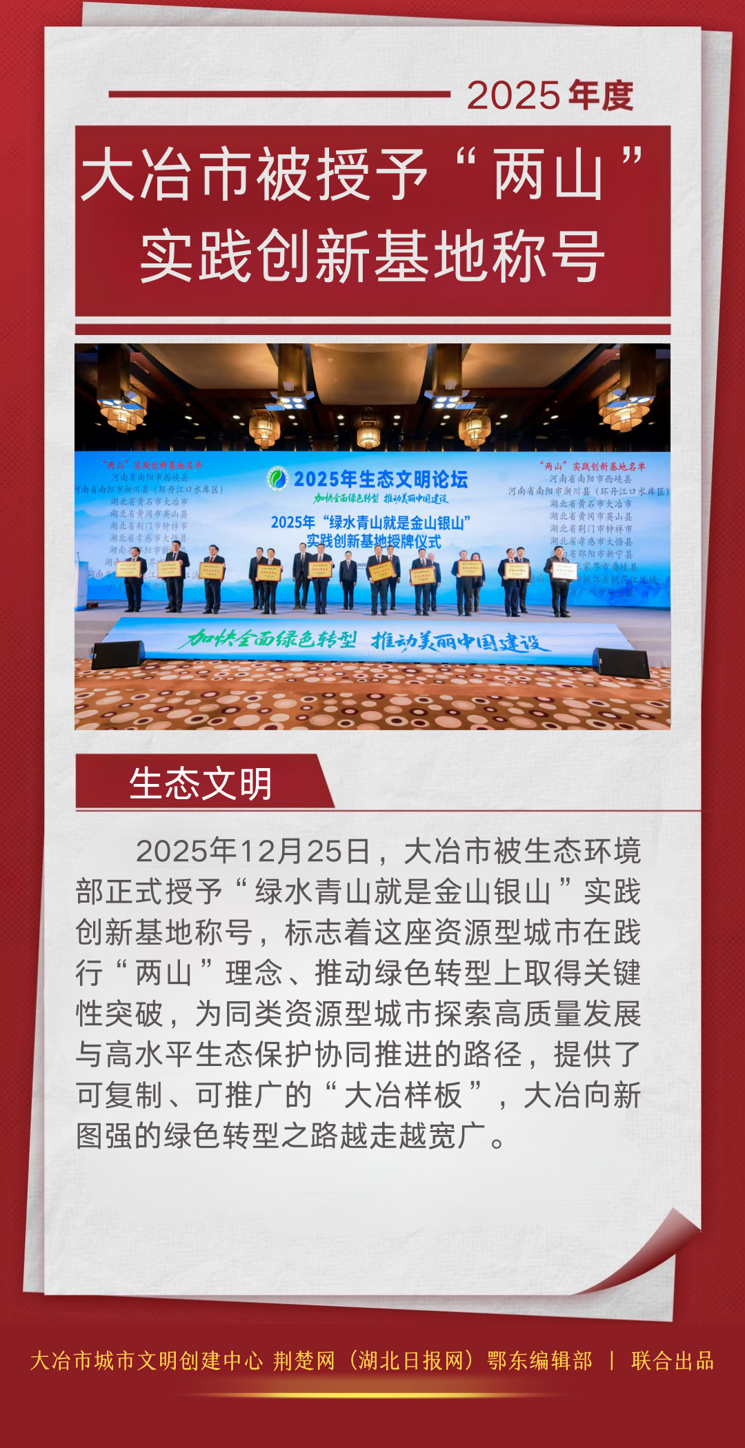 这一年,大冶每一处变化都藏着民生温度,每一幅图景都彰显时代风采。2025年大冶市精神文明建设年度回顾,就藏着这座矿冶名城的文明密码,见证着文明之花在铜都大地悄悄绽放、愈发绚烂。
