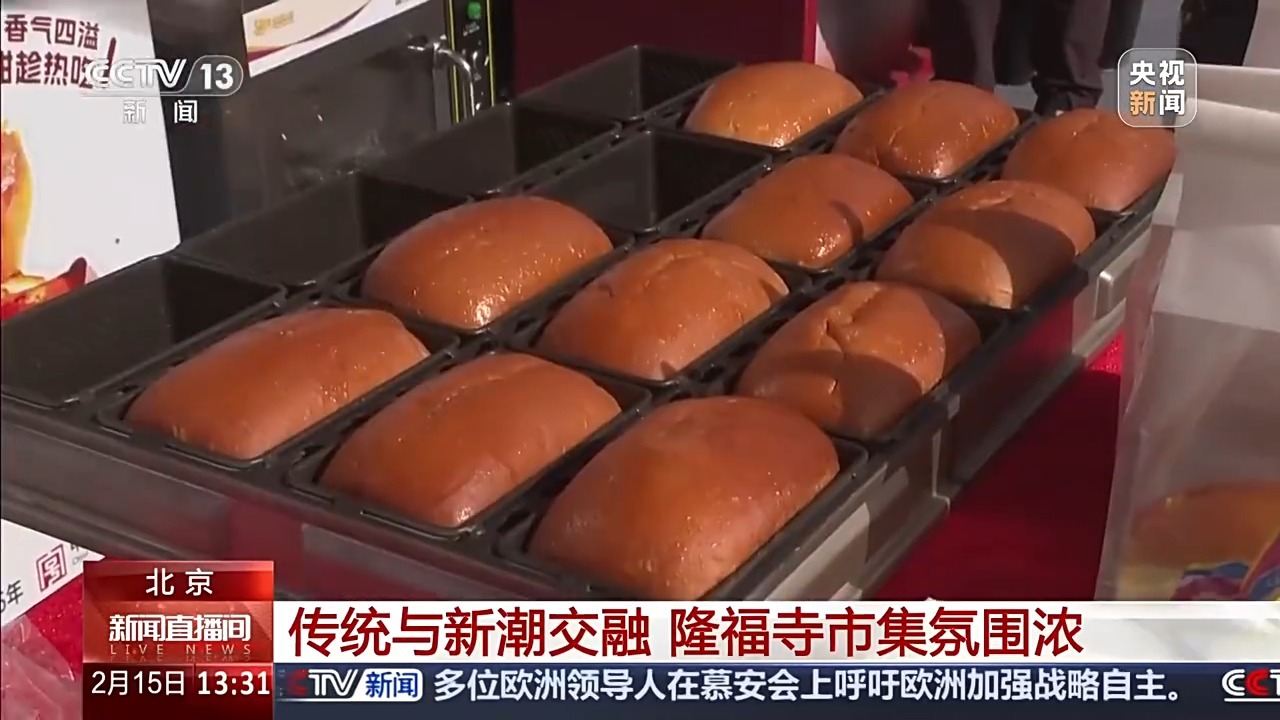 总台记者 马欣欣:现在是在北京隆福寺的新春市集,最近这儿特别热闹,这里是一个兼具传统年味和现代潮流的市集,能“一站式”购买到糖炒栗子、地瓜、瓜子等老北京特色年货。摊位面前排起了长队,人们都在期待着现烤面包出炉。除了30家老北京老字号的摊子之外,这还能看到煎饼机器人做煎饼,喝到调酒机器人做的酒。