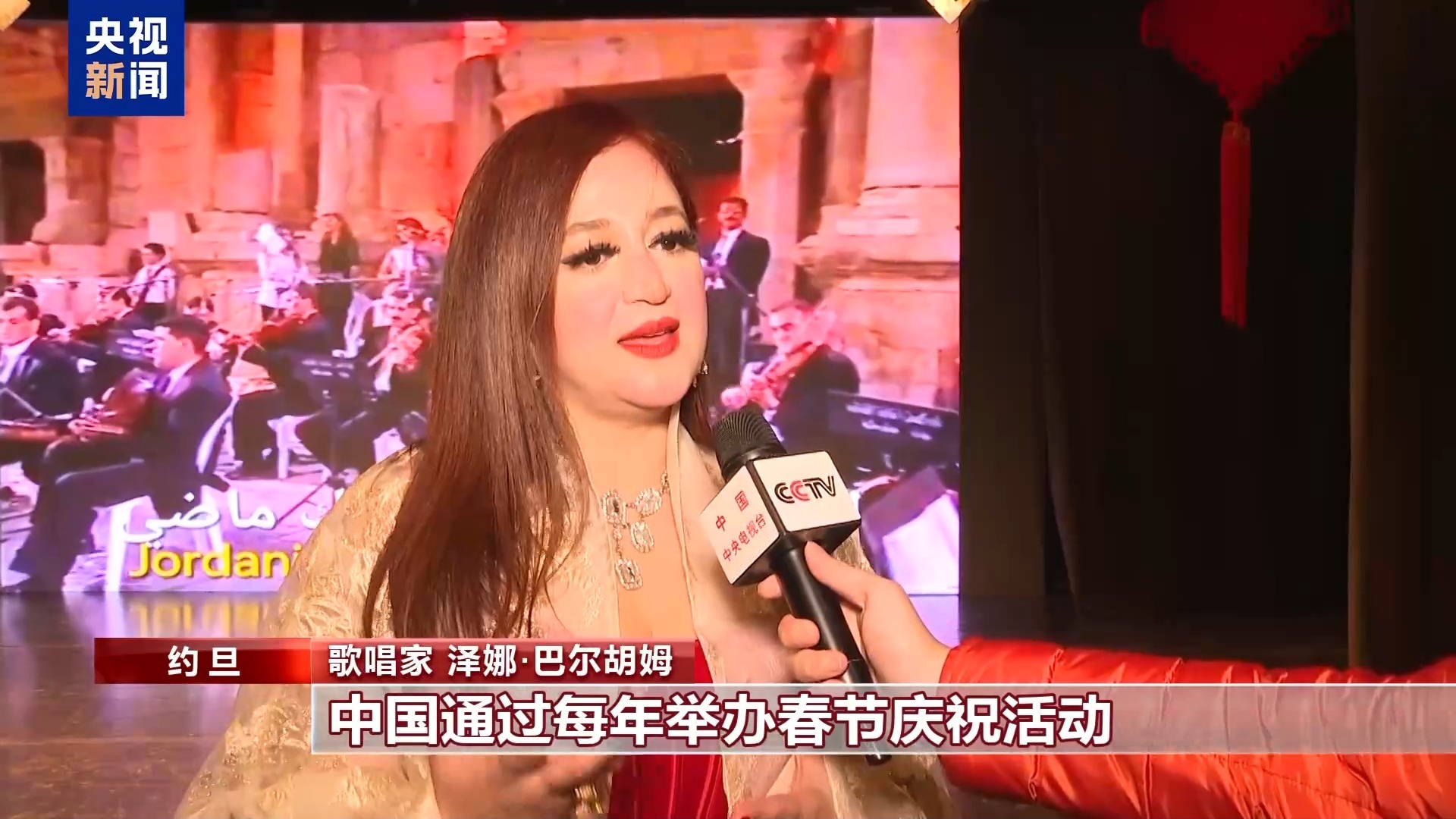 歌唱家 泽娜·巴尔胡姆:中国通过每年举办春节庆祝活动,向世界展示中国文化和美好的传统。今年在约旦的活动正在搭建一座文化桥梁,不仅促进约旦与中国的文化交流,也推动中国与阿拉伯国家的文化互鉴。