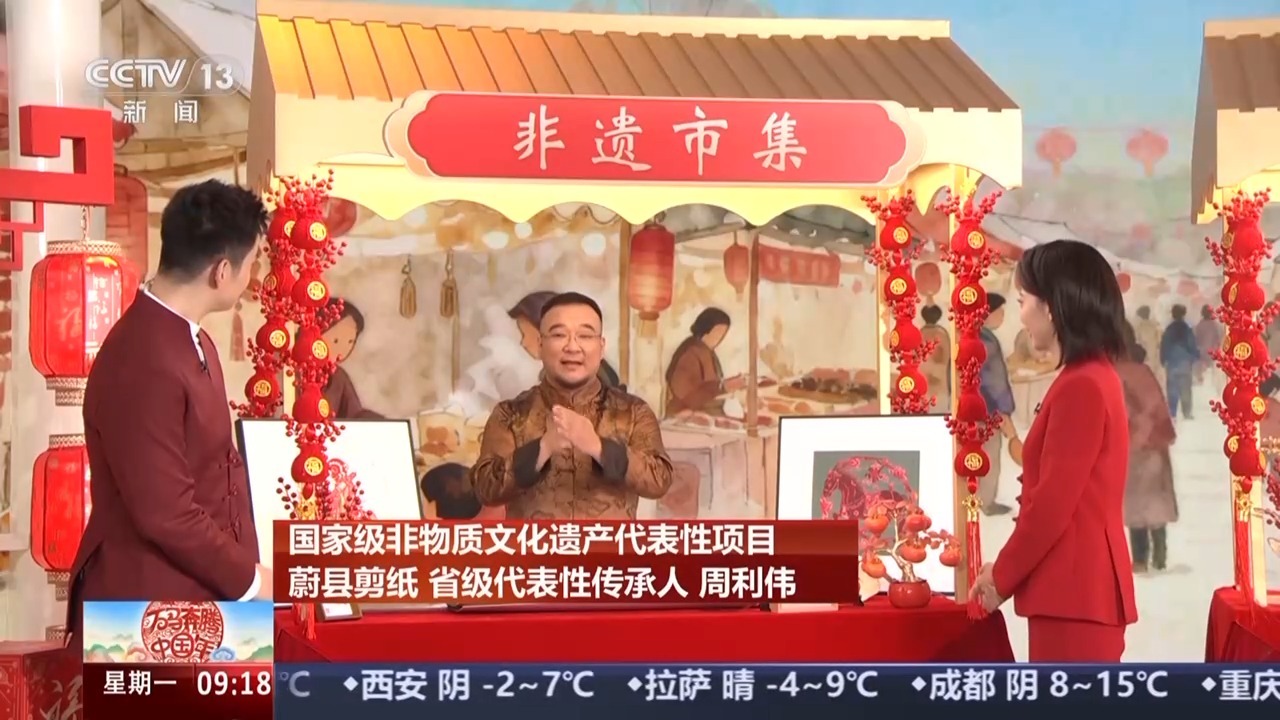 蔚县剪纸省级代表性传承人 周利伟:大家好,我是周利伟,来自河北蔚县。在这儿给大伙拜年啦,祝大伙新年红红火火,事事顺心!