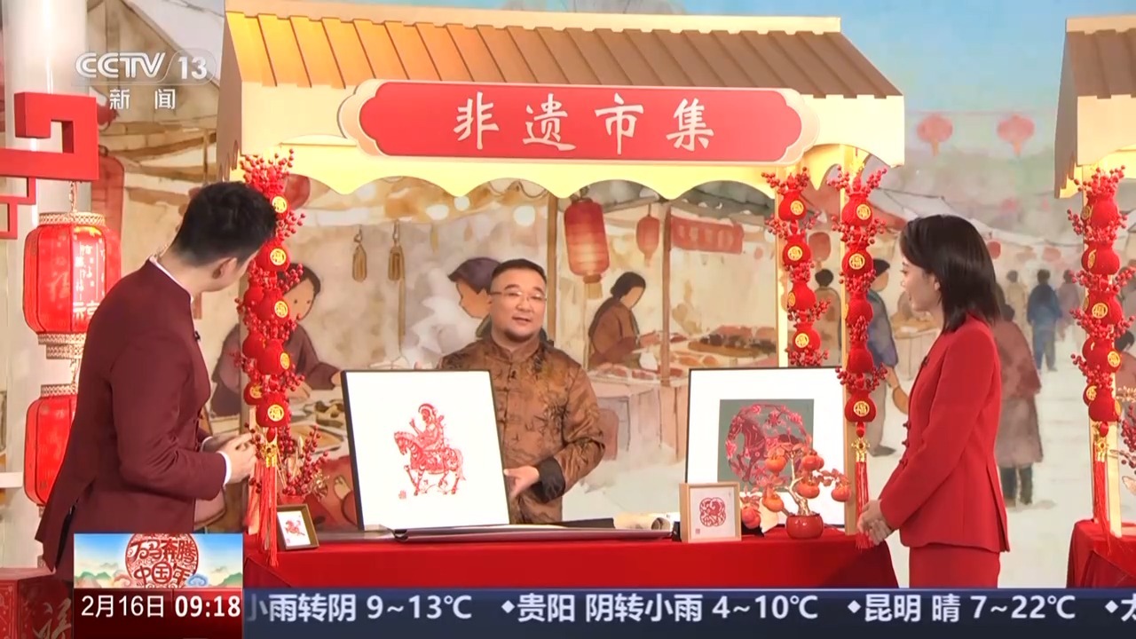 哈乐:蔚县剪纸,既有北方民间剪纸的粗犷、质朴,又有南方剪纸的细腻、秀丽,就像咱们过年的年味儿,又热闹又精致!周老师,今天在现场制作一幅什么样的作品?
