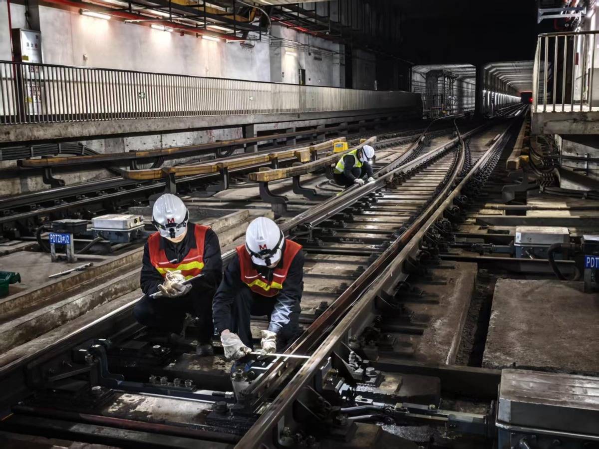 谈及两专业联调检修,徐奇打了个比方:转辙机与尖轨联动,就像汽车方向盘一样调整地铁行驶方向。假如这套“地铁方向盘”出现卡顿,就需要信号专业与线路专业协同开展“工电联调”。董放进一步解释说,信号专业人员微调转辙机动作参数、线路专业人员优化轨道参数,双方协同快速攻克道岔几何尺寸超限、尖轨与基本轨密贴等重难点问题,保障尖轨在转换过程中动作平稳、与基本轨紧密贴合。相较于单一专业独立作业,整体效率大幅提升。