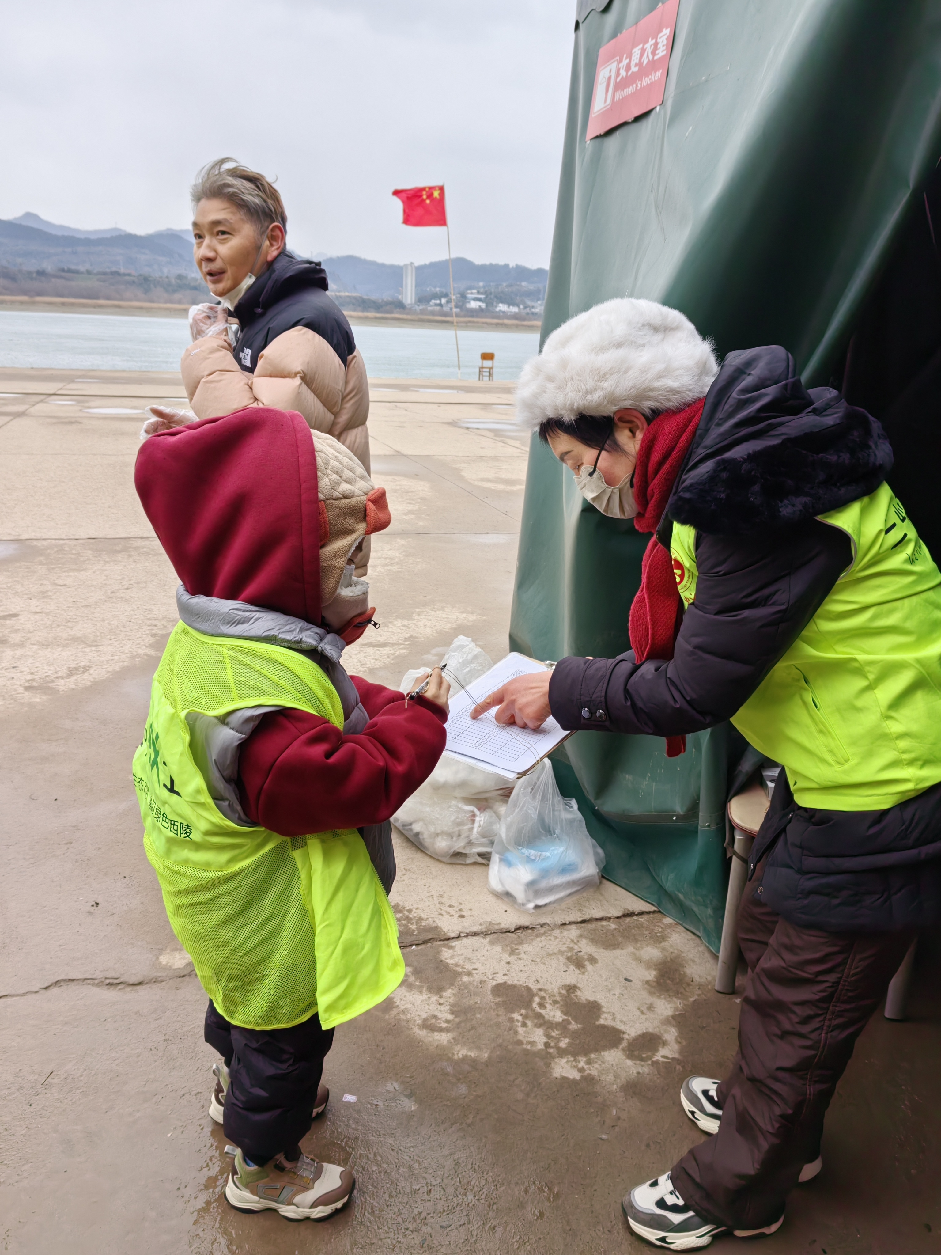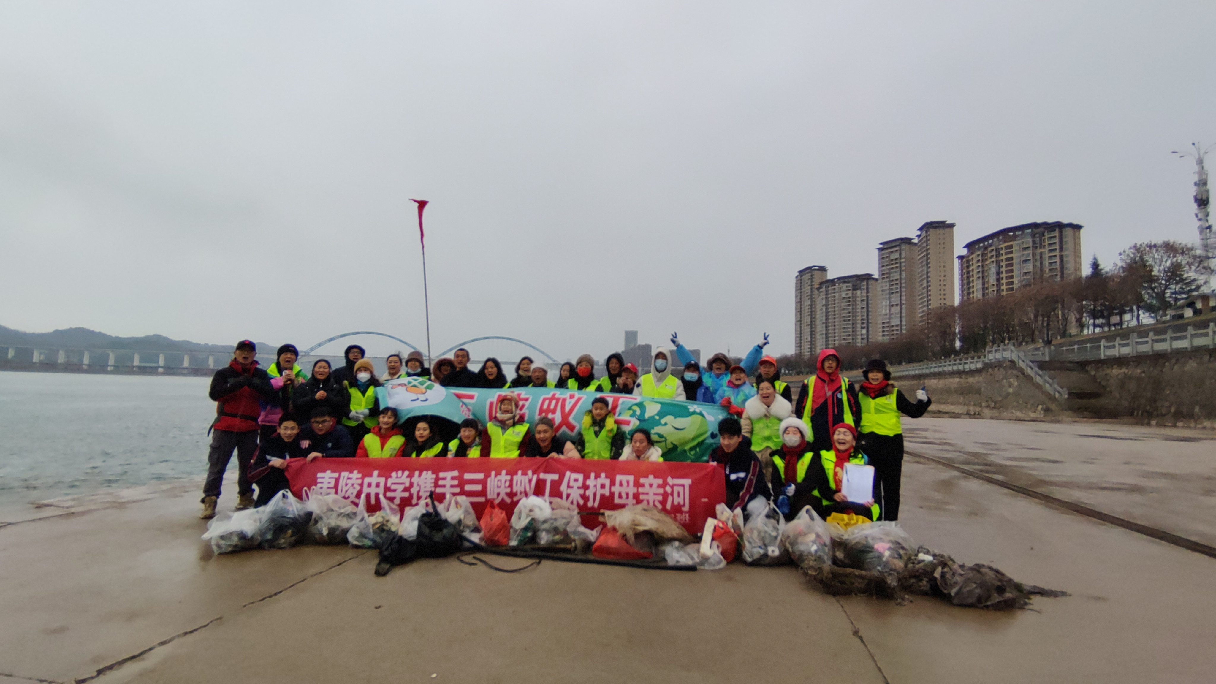 当整座城市沉浸于团圆喜庆的氛围时,宜昌城区长江江滩上,一群身着荧光绿马甲的身影已悄然集结。上午9时,40余名“三峡蚁工”志愿者顶着冬日的寒风冷雨,准时出现在江边,以一场特殊的“净滩”行动辞旧迎新,为母亲河擦亮容颜。