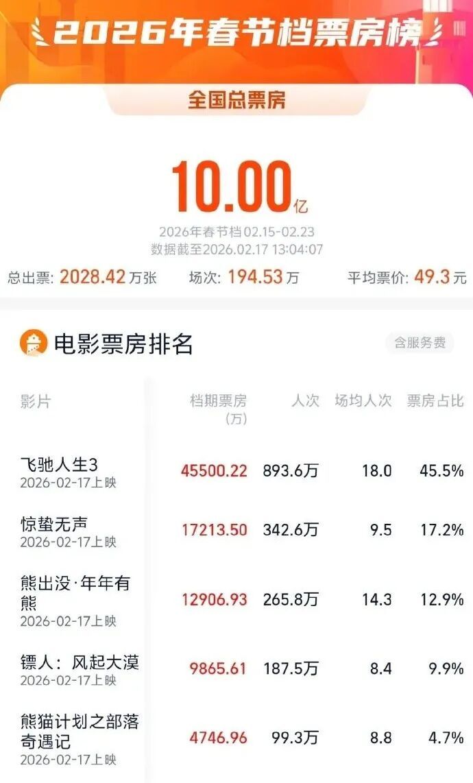 《飞驰人生3》暂列春节档票房榜首位