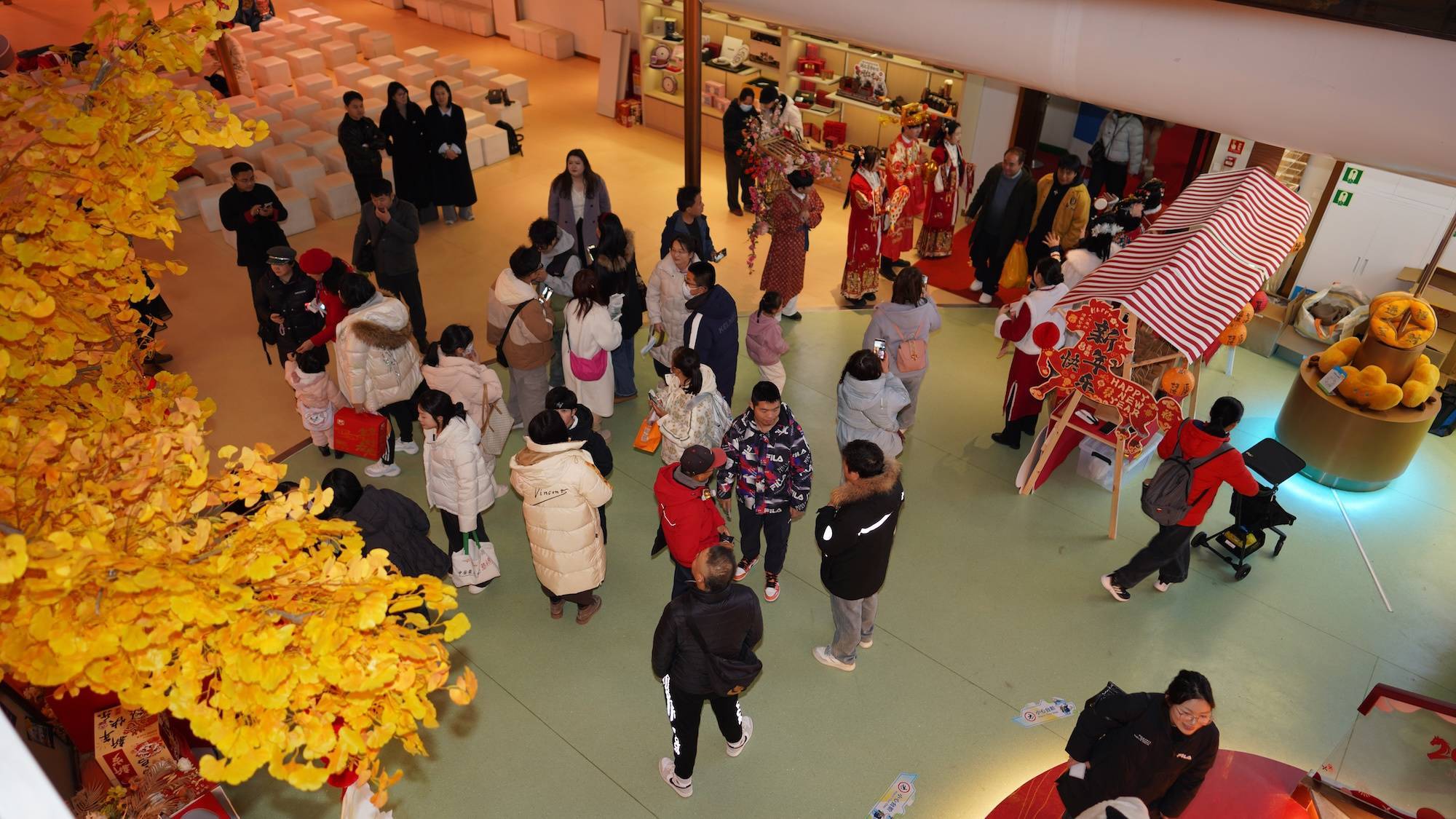 春节假期,游客在“长江荣耀”游轮上逛庙会。