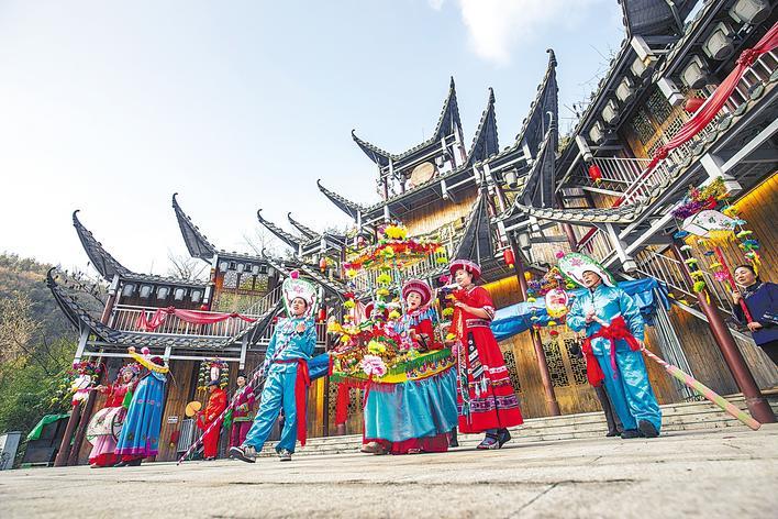 英山县温泉镇民俗表演。(视界网 王江 摄)