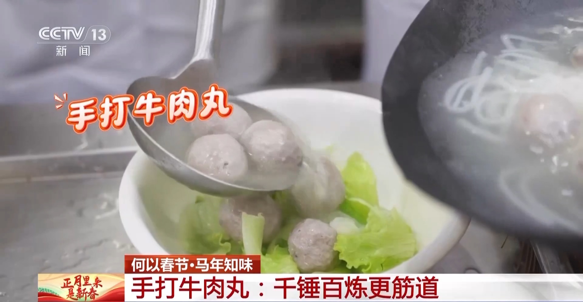 总台央视记者 曾文甫:大家现在听到的这富有节奏感的捶击声,是为了制作当地一道传承百年的非遗美食——钦工肉圆,而这道菜也是当地人在年夜餐桌上一道必不可少的佳肴。