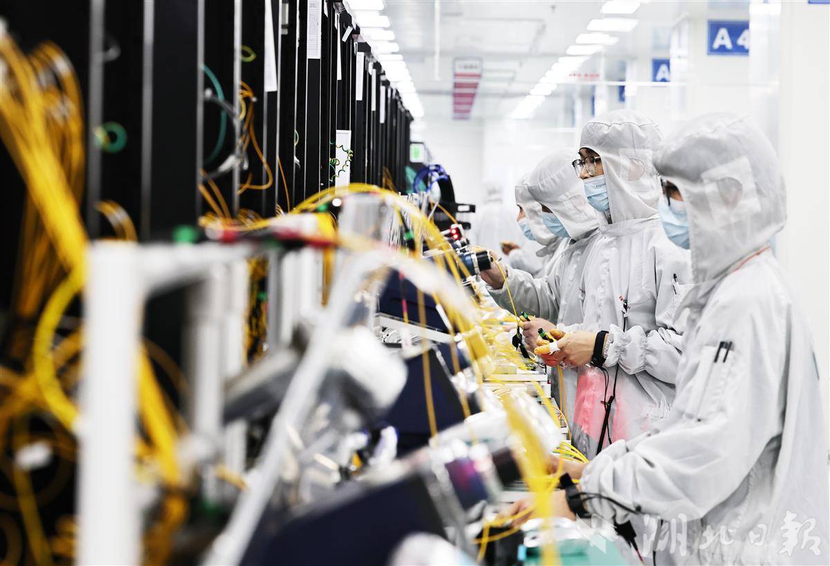 “订单已经排到 2026 年第四季度,产线 24 小时不间断生产。” 华工科技光模块业务负责人介绍。今年,公司计划在现有基础上,将 800G、1.6T 高速光模块产能再提升 50% 以上,持续满足全球市场旺盛需求。(湖北日报全媒记者 陈迹 通讯员 游茁瑞 摄)