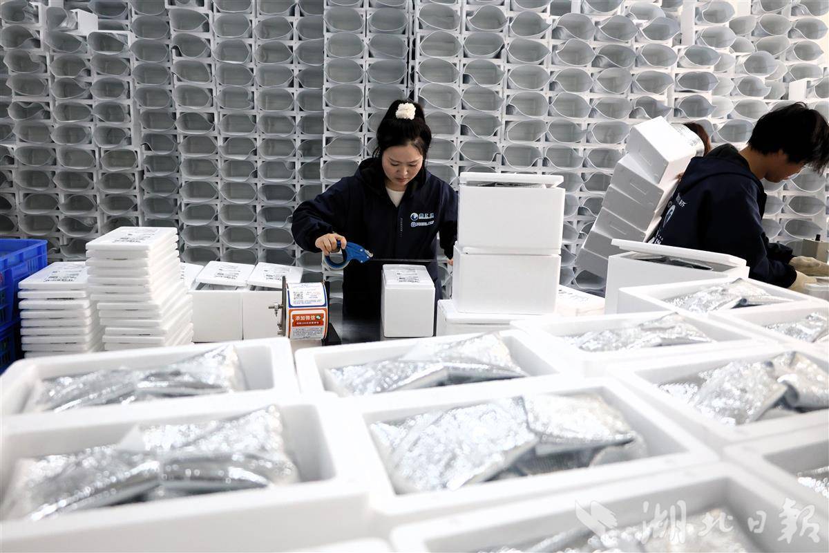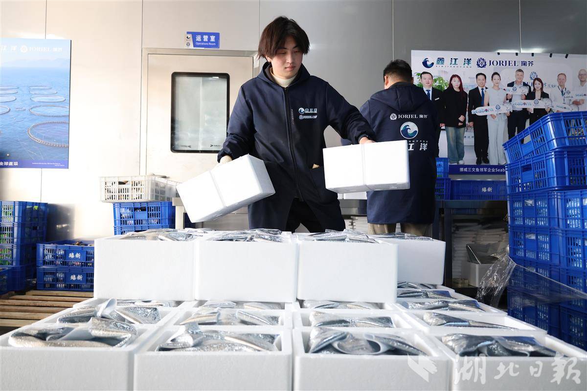 亚洲最大三文鱼智能生产线春节“爆单”。图为打包现场。湖北日报全媒记者周鹏摄