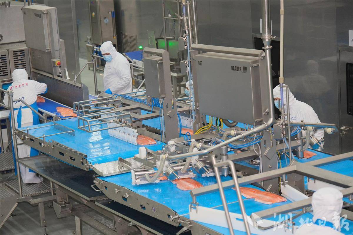 亚洲最大三文鱼智能生产线春节“爆单”。图为繁忙的智能化生产线。湖北日报全媒记者周鹏、通讯员刘伟摄