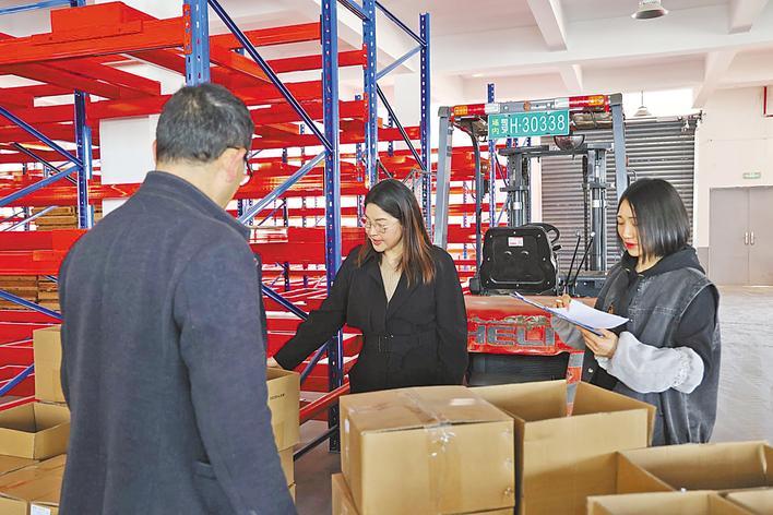 亿晟电子工作人员忙着装箱发货。(湖北日报通讯员 李璐 摄)