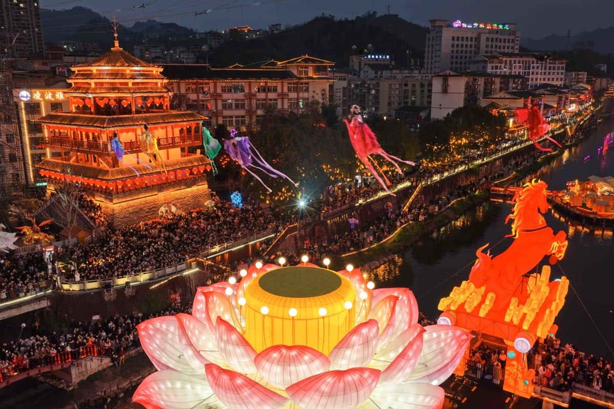 暮色四合,宣恩贡水河畔热气升腾,两岸楼阁飞檐的金色灯带与碧波交相辉映,一幅山水相融的新春画卷徐徐展开。作为2026年全国文化进万家活动示范点,宣恩以“浪漫宣恩·一马騳骉”为主题,打造了一场横跨47天的新春盛宴,成为湖北春节文旅的亮丽名片。