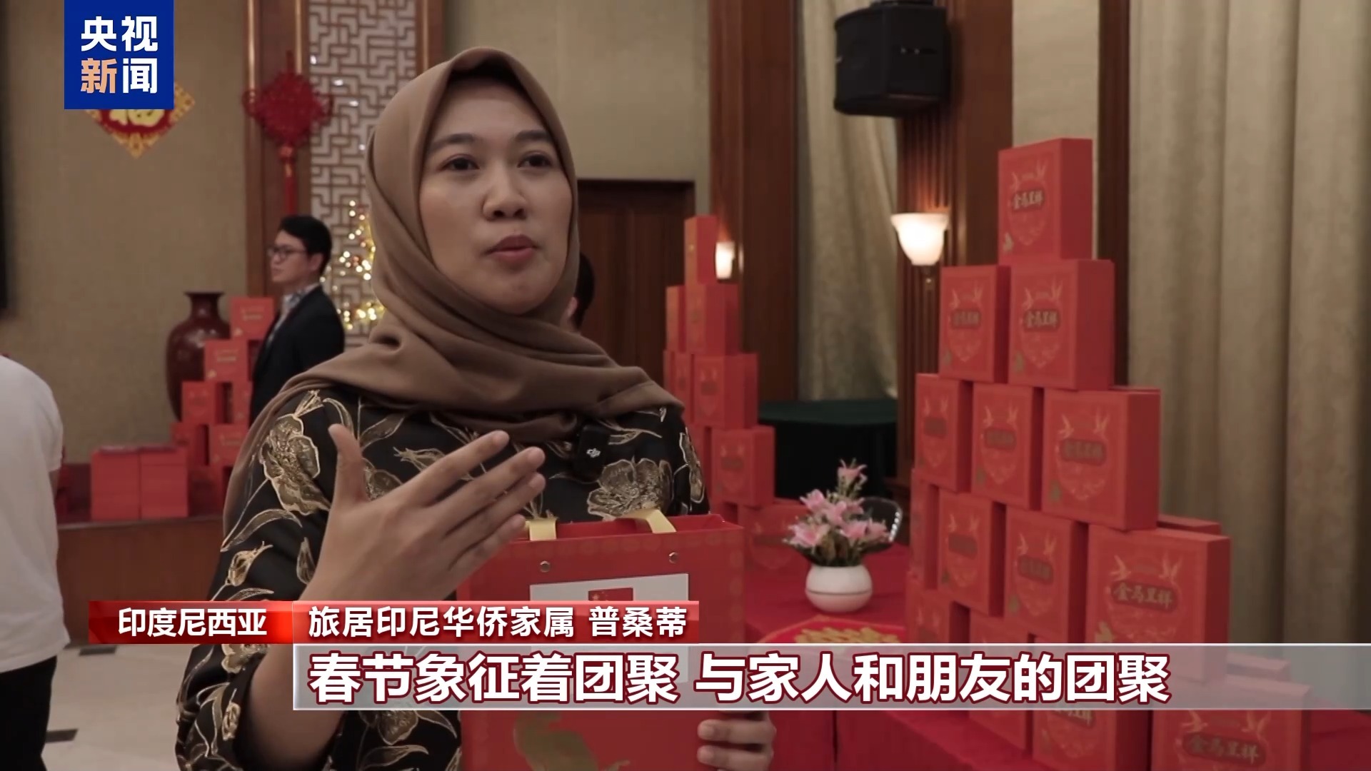 旅居印尼华侨家属 普桑蒂:春节象征着团聚,与家人和朋友的团聚。今天我们收到了这份礼物,在我看来,这是他们(使馆)关心我们的方式之一。春节期间祝福所有人,我希望今年我们都能幸福、健康、快乐,新年快乐。