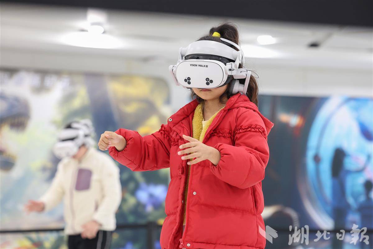 2月19日,小朋友在襄阳市科技馆体验vr沉浸式剧场。