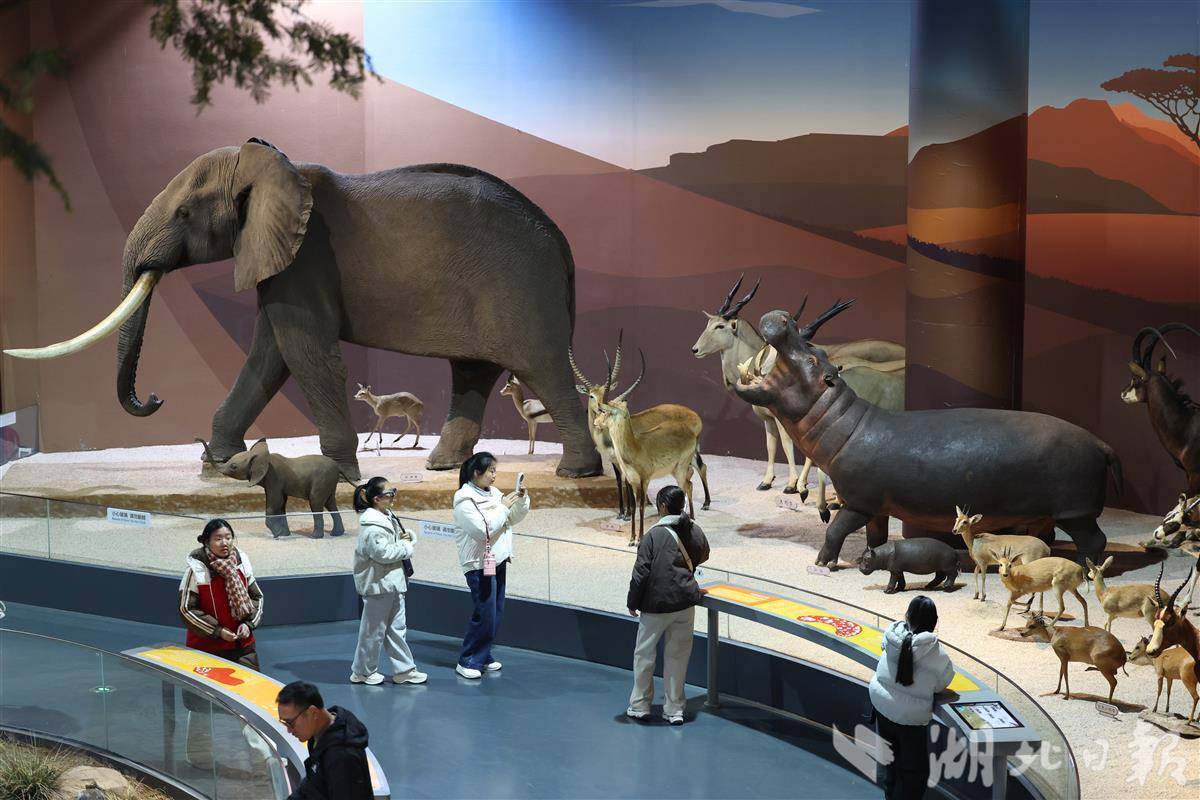 2月19日,游客在襄阳市科技馆参观地球家园展厅。