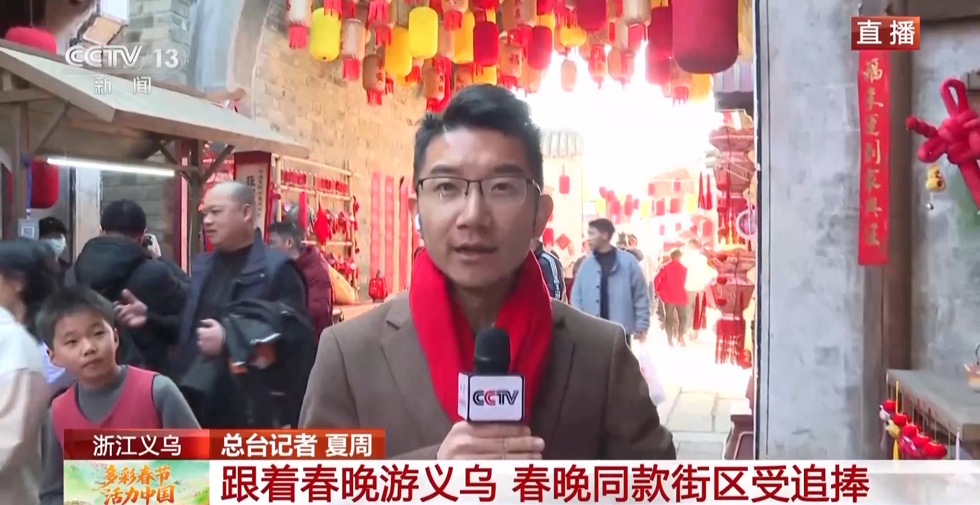 今年总台春晚,四个分会场的节目备受好评,在此带动下,人们纷纷来到各分会场,打卡同款风景,解锁特色年味。作为四个分会场之一的浙江义乌,春节假期就迎来了全国各地的游客。据义乌文旅部门统计,截至大年初二,春节累计全域旅游人数达217.97万人次,与去年同期相比增长28.9%。