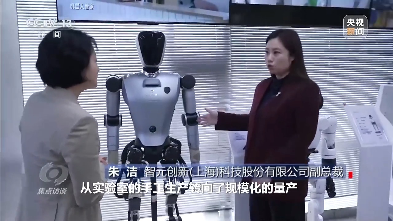 智元创新(上海)科技股份有限公司副总裁 朱洁:从2023年到现在,我们实现了很多突破,其中重要的突破就是生产方式从实验室手工生产转向了规模化量产。智元在2025年1月份,实现了全球最快量产的纪录,量产规模到了1000台,2025年12月实现了5000台的量产下线,另一款精灵机器人精灵G1已经可以在工厂里面打工了。