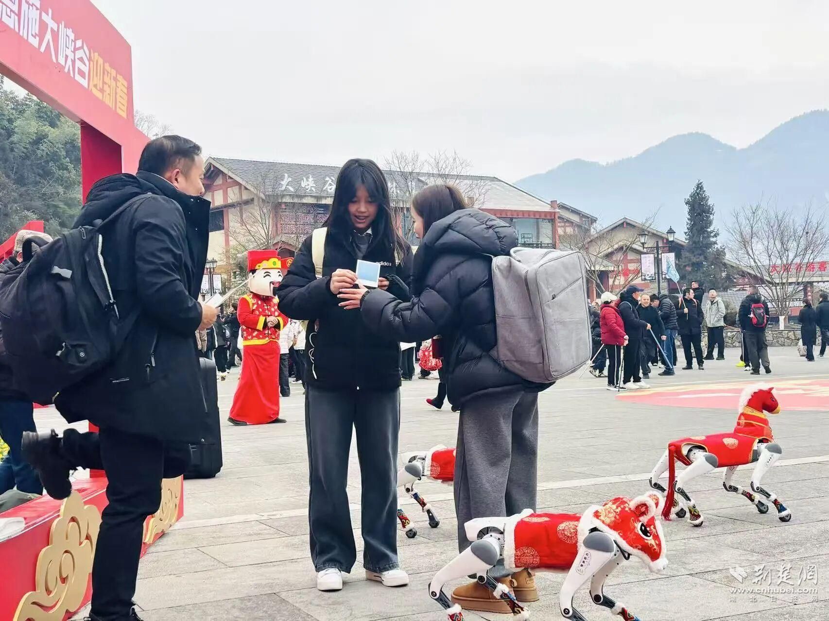 节日期间,恩施大峡谷张灯结彩、喜气盈门。土家摆手舞、舞龙舞狮、原生态山歌等民俗展演轮番上演,民族风情浓郁,年味儿十足。马年主题机器马互动表演新颖有趣,成为景区热门打卡点,吸引游客驻足观赏、互动留念。景区还为游客送上热气腾腾的免费汤圆,以暖心服务传递新春温情。