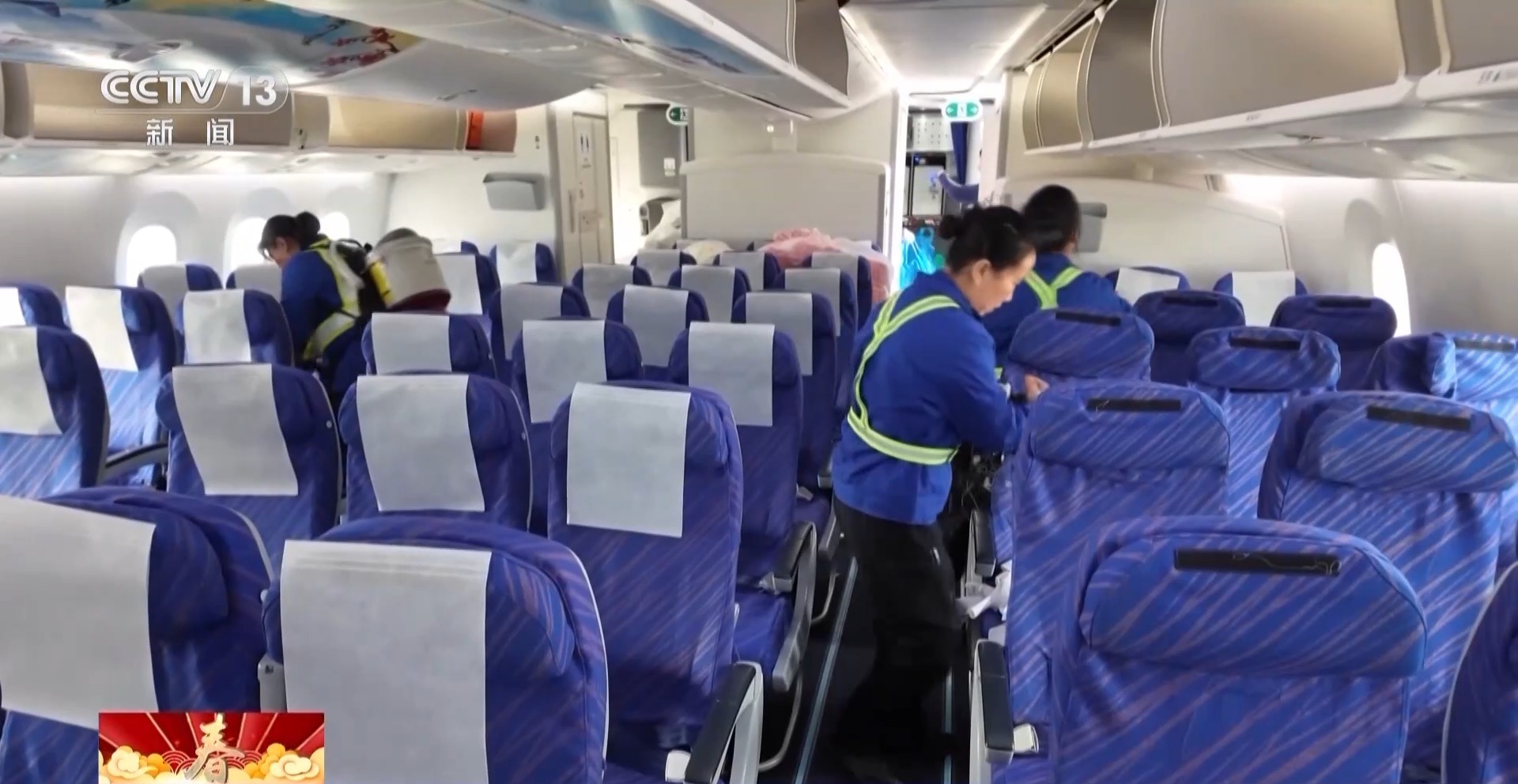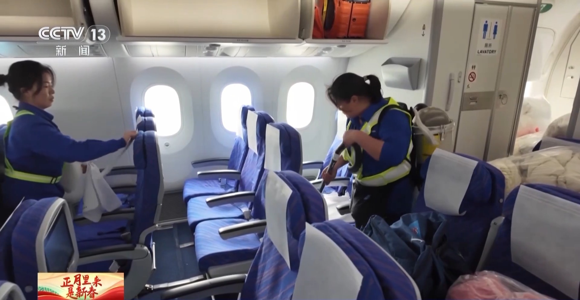 春运期间飞机利用率高,保障任务比平时增加了两三成。为了给每趟航班的间隙留出充足的准备时间,让旅客早一点登机、准时回家,一个十余人的勤务班组,需要在10分钟左右的时间内,迅速清理完一架短停的飞机。