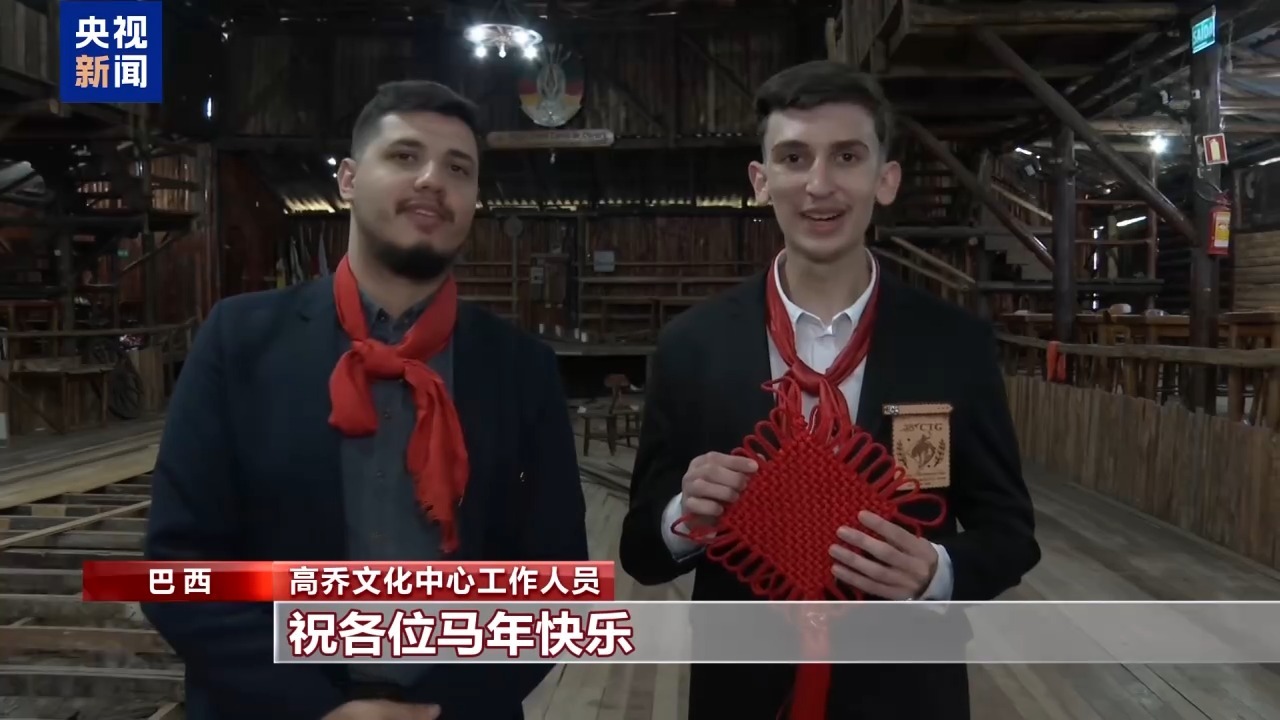 高乔文化中心工作人员:向中国朋友们问好。我们在巴西南里奥格朗德州,祝大家马年大吉、身体健康、平安吉祥、繁荣昌盛。