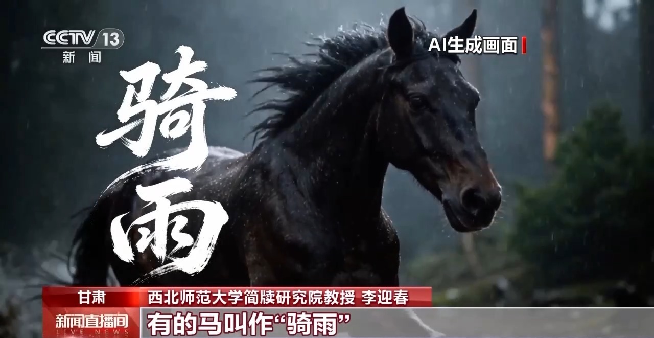 西北师范大学简牍研究院教授 李迎春:有些马叫“赤兔”,因为兔子跑得快。还有一些马叫“惊鱼”,就像受惊的鱼一样,也说明跑得快。有的马叫作“奔星”“戴星”,就和星星有关。有的马叫作“骑雨”,就和下的雨有关,形容速度非常迅疾。