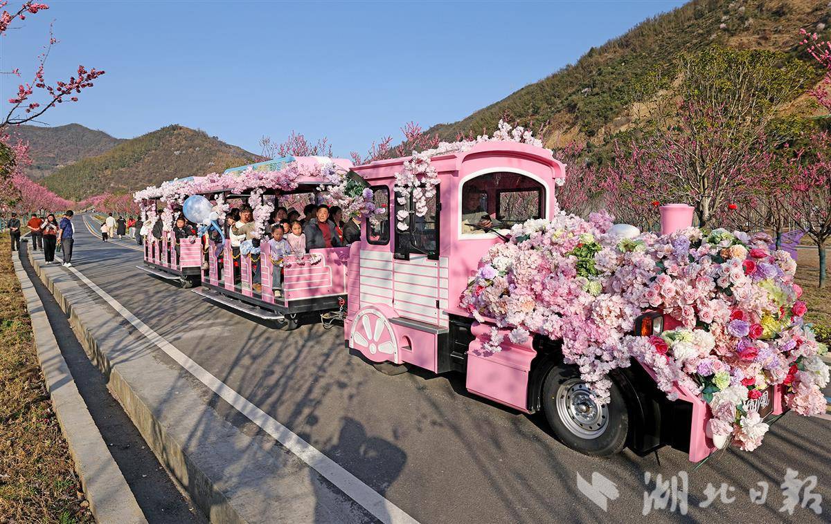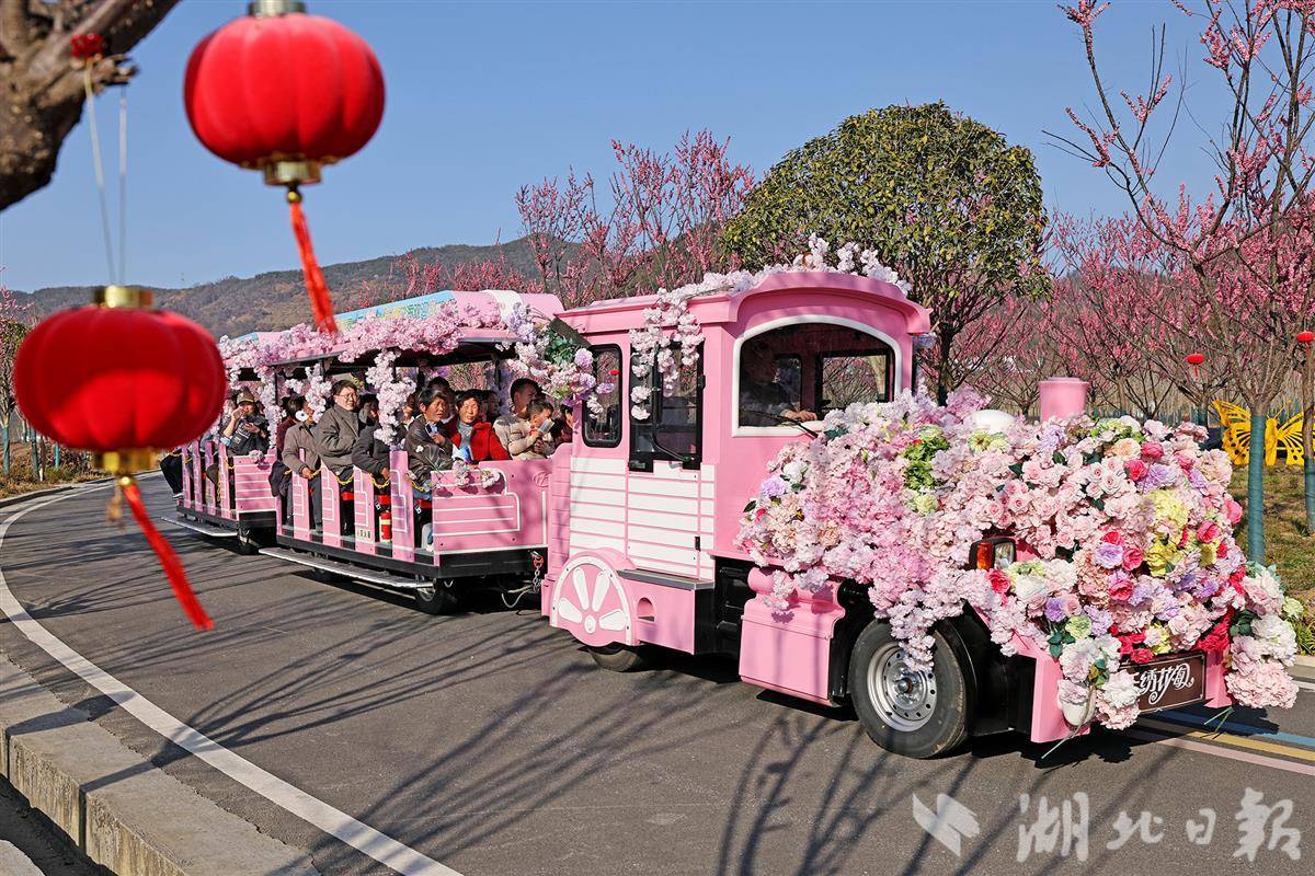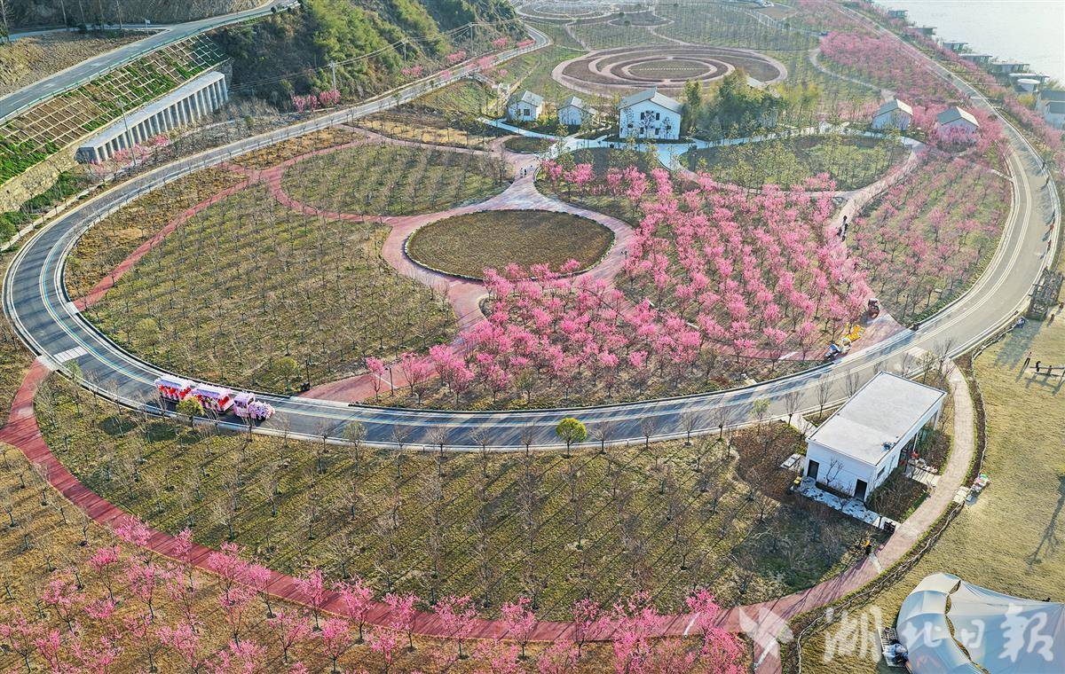 2月20日,十堰市竹山县上庸镇,圣水湖畔红梅绽放,吸引众多游人前来观赏游玩,尽享节日快乐时光。
