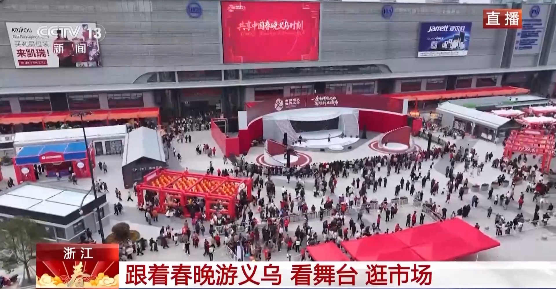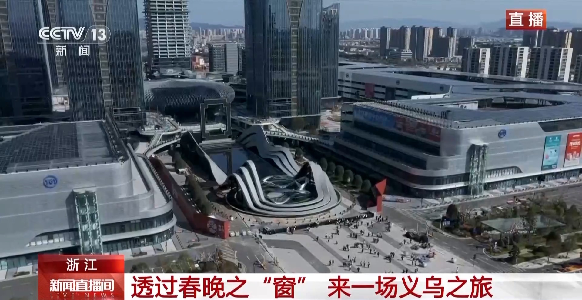 回到现场,我们透过这扇窗户往四周延展,大家看到的就是实实在在属于义乌的未来,这是去年刚刚投用不久的义乌全球数贸中心,也被当地人称为第六代市场。了解义乌历史的朋友都知道,从“马路市场”到“世界超市”,再到如今的“数链全球”,春晚的这个主舞台有点像是历史的刻度。市民和游客非常愿意来这里参观和打卡,在开门迎客之日,客流量突破了6.19万人次。