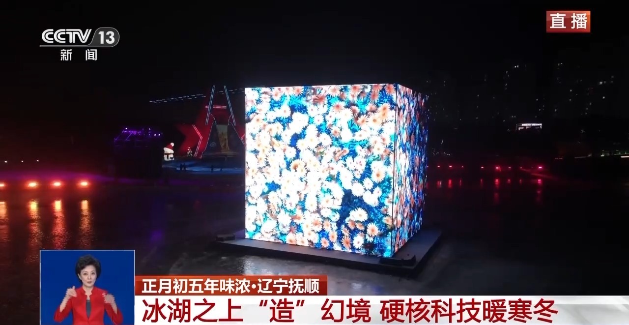 更为梦幻的是搭建在冰湖之上的裸眼3D立方体,由5块巨型屏幕组成。屏幕亮起时,可以感受到冰雪运动员破冰而出的震撼,还能够看到冰封湖面上瞬间百花齐放的惊艳。