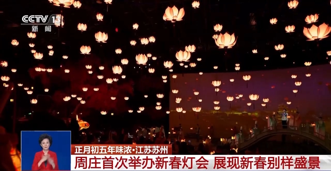 为了营造新春氛围,今年周庄首次举办新春灯会,灯会一共设置了四大特色灯区,通过科技+彩灯+演出的形式,全方位呈现“灯映水乡、福马送喜”的新春盛景。