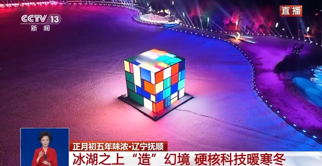 立方体高12米,接近四层楼的高度,重量有20吨。在东北零下二三十摄氏度的户外,在冰面上搭建这样一个大家伙,难度极大。所有的线路都深埋在冰雪之下,低温会让绝缘层变薄变脆,昼夜温差又可能让接头松动。电力部门给线路加装了保温装置,同时加强巡视排查。正是他们的守护,才换来了这座冰立方在寒冬里的闪耀。