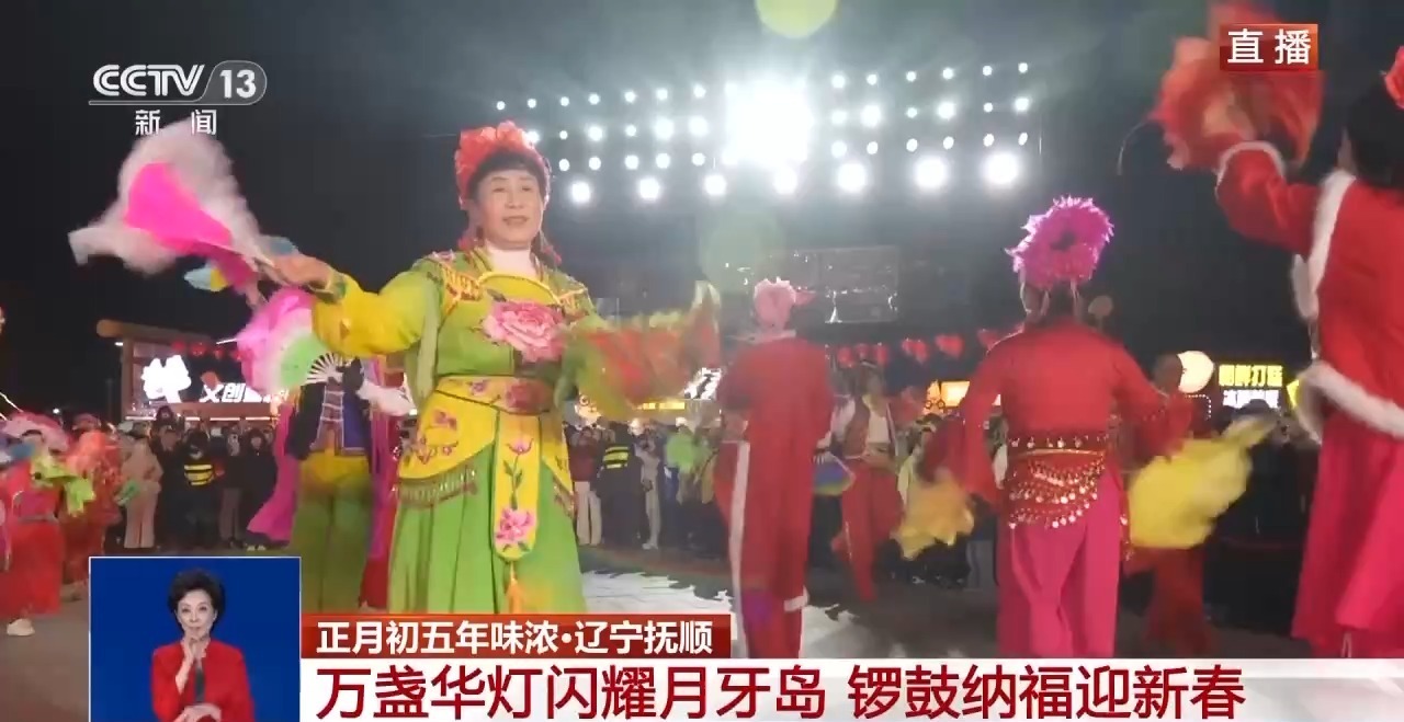 在辽宁抚顺月牙岛生态公园的蓝月湾广场,新春灯会的演出热辣上演。喧闹的锣鼓声传递着节日的喜悦,欢腾的舞龙舞狮引得观众阵阵叫好。