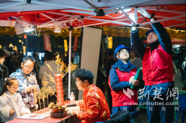 荆楚网(湖北日报网)讯(通讯员 吴斌 毛强 邬舒瑶)年货摊位前,炸藕夹的油锅滋滋作响,热气裹着香味飘散,穿新衣的孩子们举着糖葫芦,在人群中追逐嬉闹……2月21日,正月初五,傍晚六点的武汉体育中心广场上,27组新春彩灯次第亮起,将夜空装点得流光溢彩。
