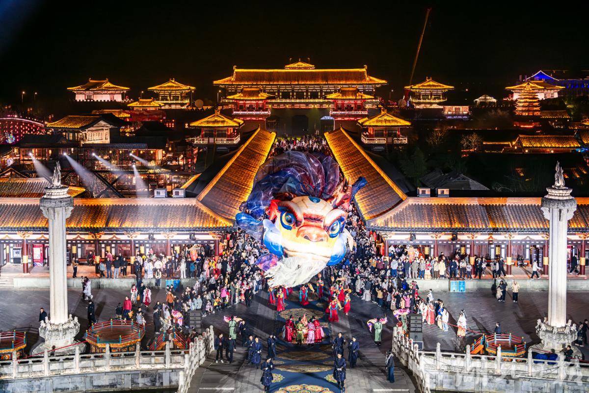 襄阳唐城景区春节假期人山人海。