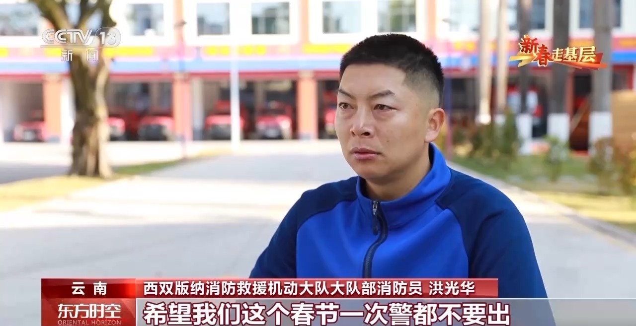 西双版纳消防救援机动大队大队部消防员 洪光华:我自己的愿望就是兑现三年前许下的承诺。当时我孩子刚好4岁,我答应了他去看大海,然后去看恐龙。希望全国的所有群众都能平平安安地过节,希望我们这个春节一次警都不要出,零出警。