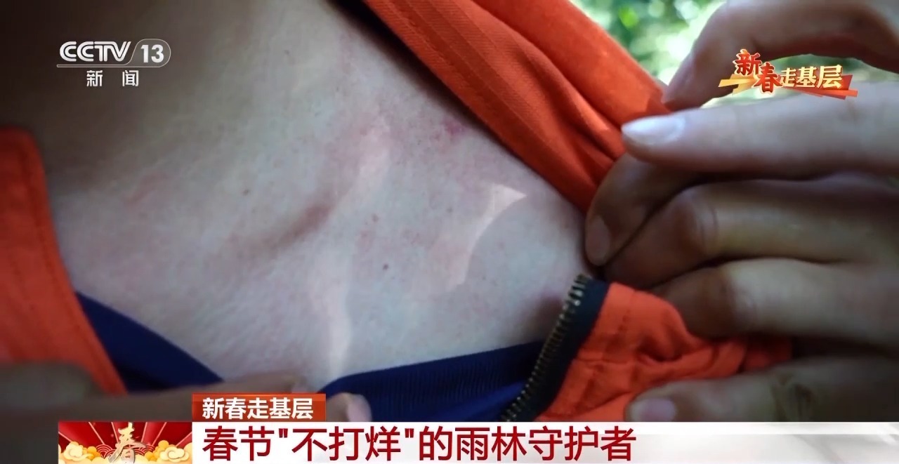 穿越雨林期间,蚊虫叮咬是消防队员最常遇到的挑战。随行过程中,刚走出几百米,记者的身上就被叮出几个包。迅速上药后,记者随队继续穿行。