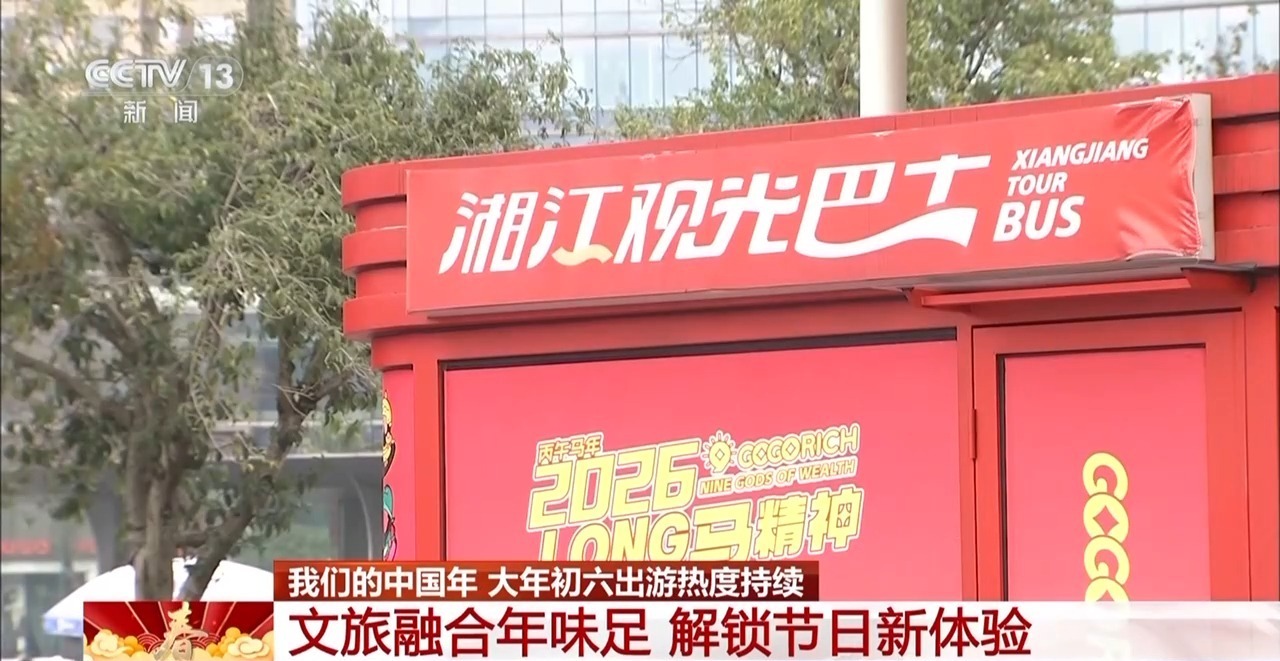 在湖南长沙,春节期间,湘江观光巴士换上了喜庆的新装,新增了站点,延长了服务时间,成为城市“移动会客厅”。大家在欣赏湘江两岸风光的同时,还可以在车里唱歌互动,登台表演,尽享春节新体验。此外,当地将新时代潮流与传统文化相融合,整合文旅资源,联动娱乐、住宿等产业,解锁新年味。