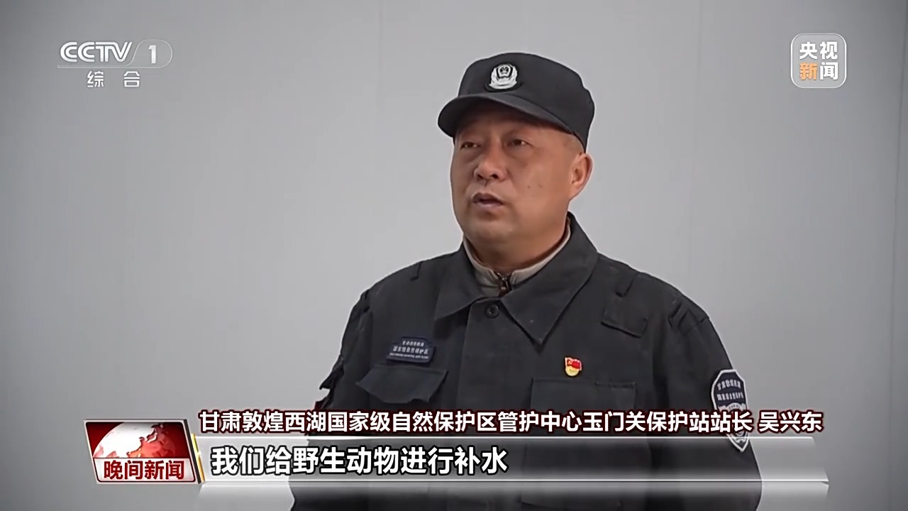 甘肃敦煌西湖国家级自然保护区管护中心玉门关保护站站长 吴兴东:我们给野生动物进行补水。冬季结冰过程中,我们会每天记录冰层的厚度,会不会影响野马的饮水需求,以保证马群能够在草场上健康。